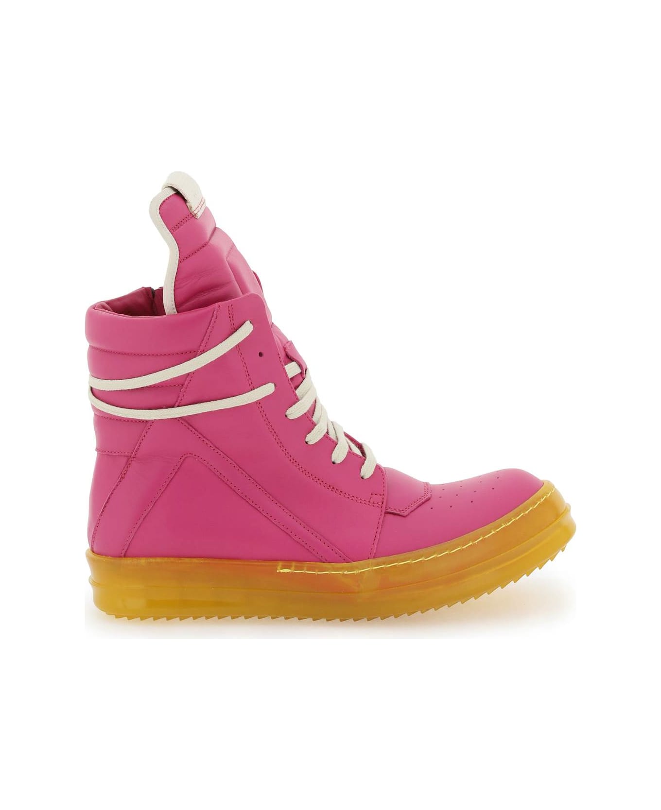 Rick Owens Geobasket sneakers in smooth leather characterized by the maxi tongue with grosgrain edges and fabric tag. Rounded toe, lace-up closure and side zip in silver-finished metal. Leather lining with removable insole, contrasting rubber sole. Extra laces included.