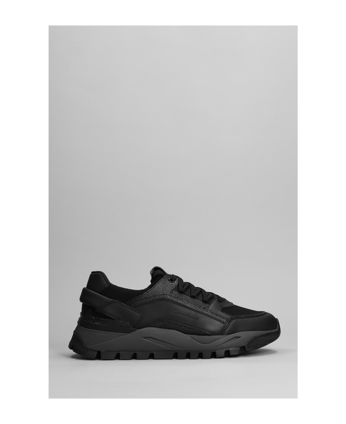 Gurwo Sneakers in black leather, laces, mesh details, rubber outsole, suede details, 100% leather, Made in Italy