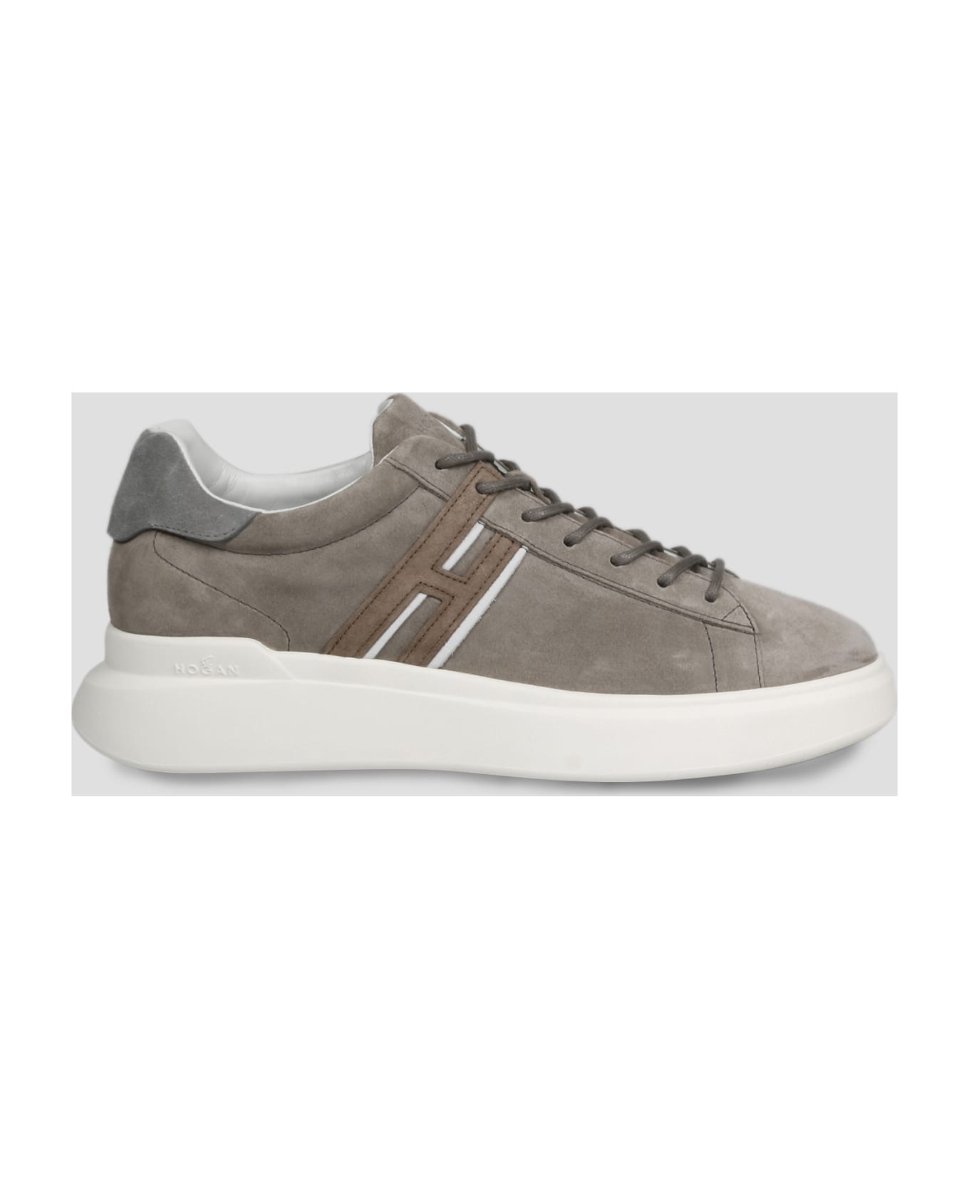 Hogan H580 suede sneakers, with the characteristic extended H that ends in a lace pass. - SS23 - Round tip - Lace up - Logo embossed on the front tongue - Contrasting edges H on the side - Memory foam insole - Aerodynamic rubber sole - Made in Italy - Suede