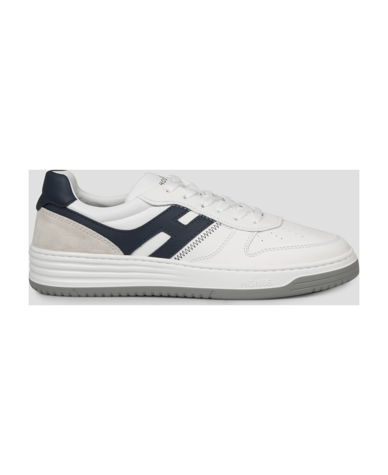 Hogan H630 sneakers, in smooth leather with suede inserts and extended H that envelopes the heel. - SS23 - Perforated round toe - Lace up - Logo print on the front tongue - Contrasting side H that extends to the back - Suede insert on the heel - Memory Foam insole - Rubber sole - Made in Italy - Leather