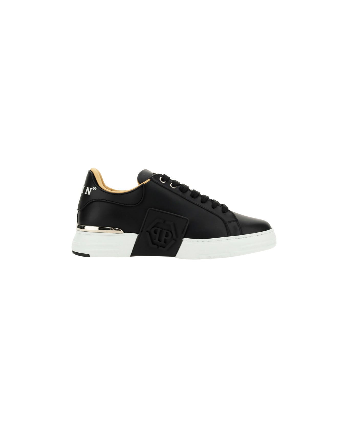 Calfskin hexagon sneakers by philipp plein, lace-up front fastening, structured sole, round toe, side panels with brand signature and embossed tone-on-tone brand logo, brand signature plaque applied to front metal tongue. brand signature on heel in contrasting embossed pattern.
