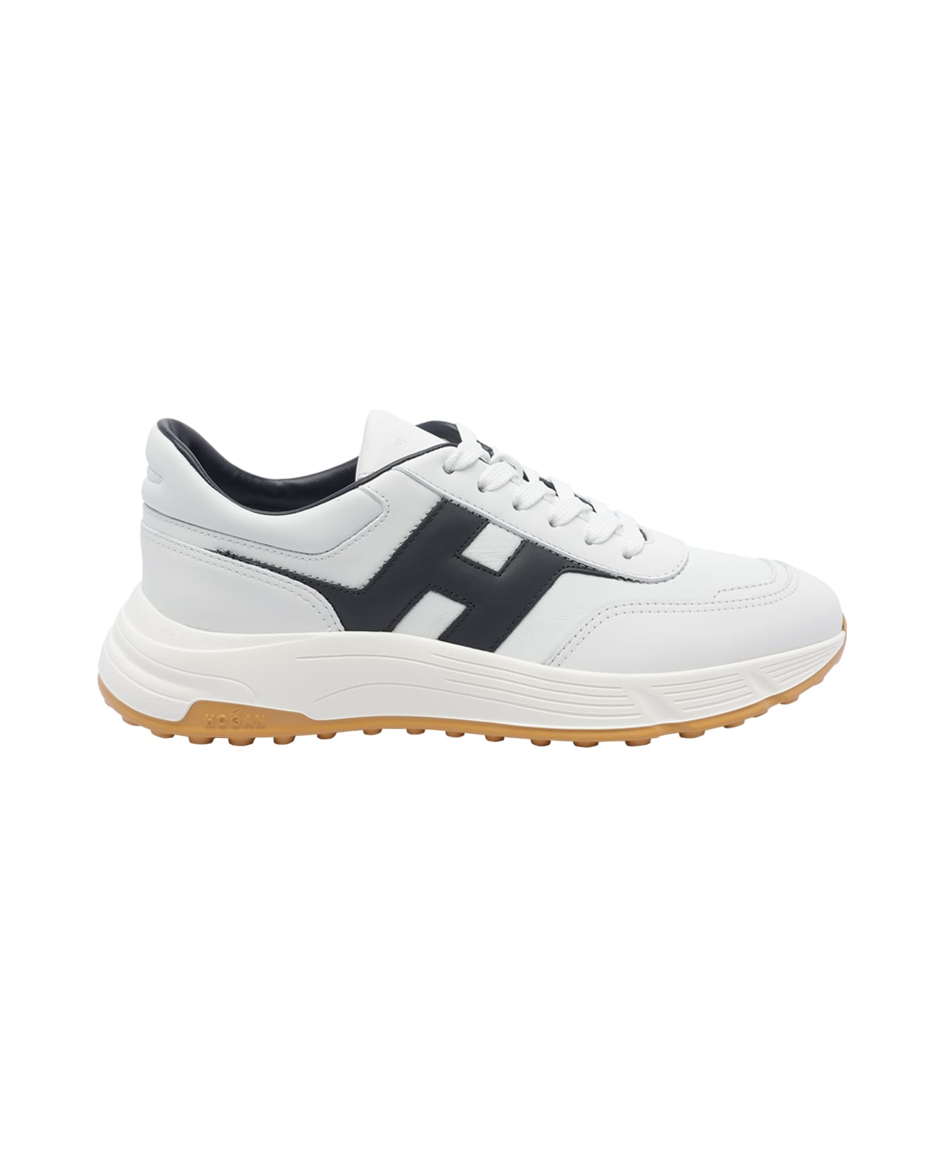 Hogan white Hyperlight sneakers, round toe, lateral H logo, leather upper, laces closure