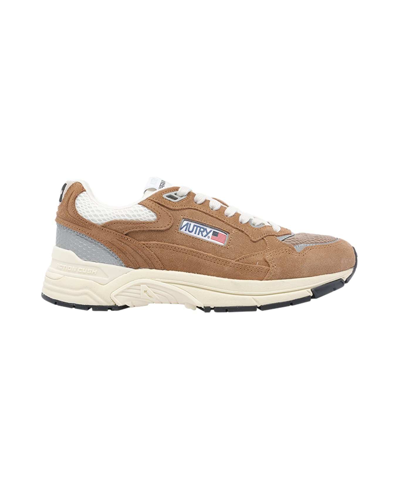 Autry brown Hyperway sneakers, round toe, suede upper, lateral logo, laces closure