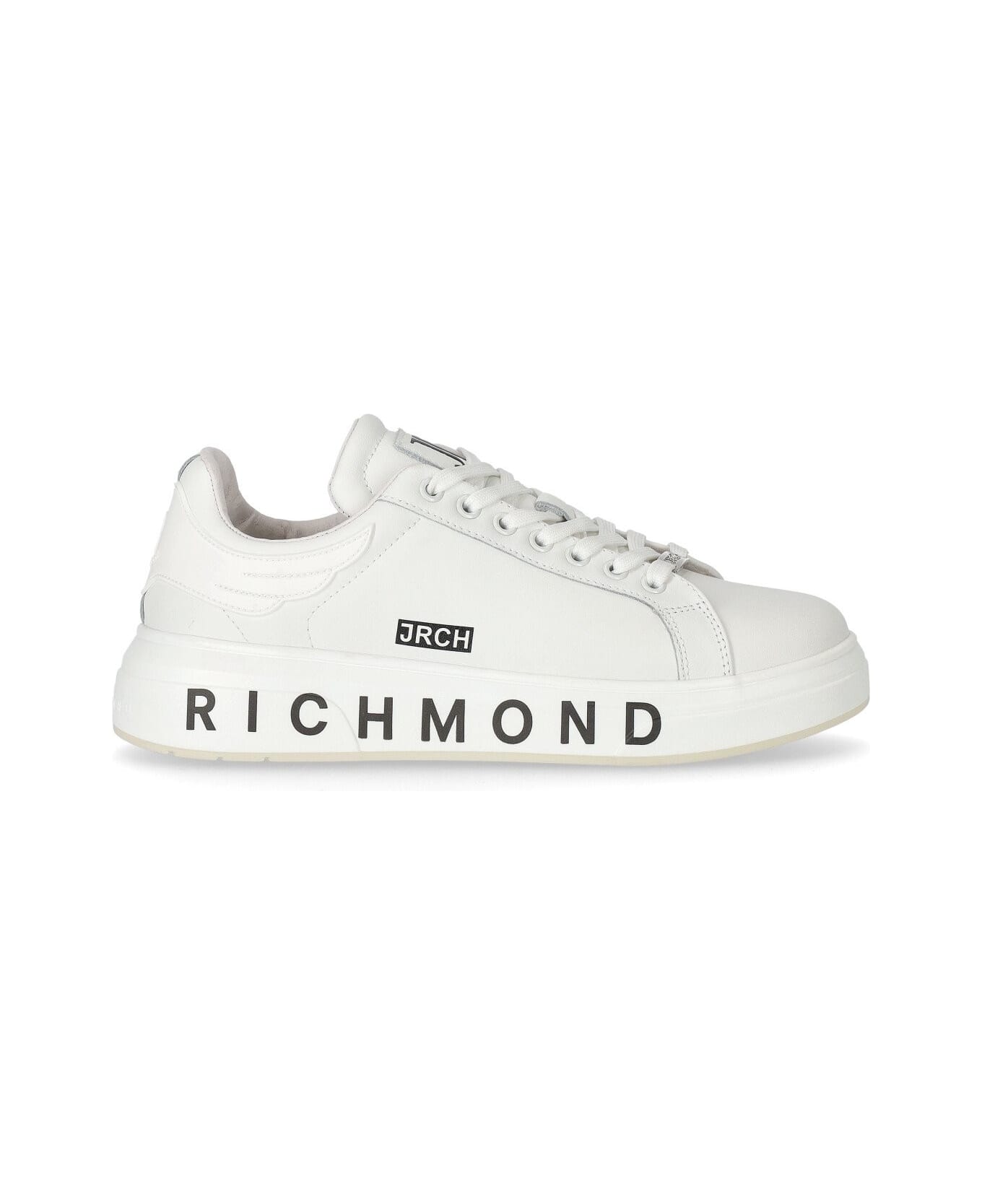 John Richmond sneaker made of white leather with contrasting logo on the sole. Rubberized detail on the back, fabric lining and leather insole. Rubber sole, height 4. 5 cm.