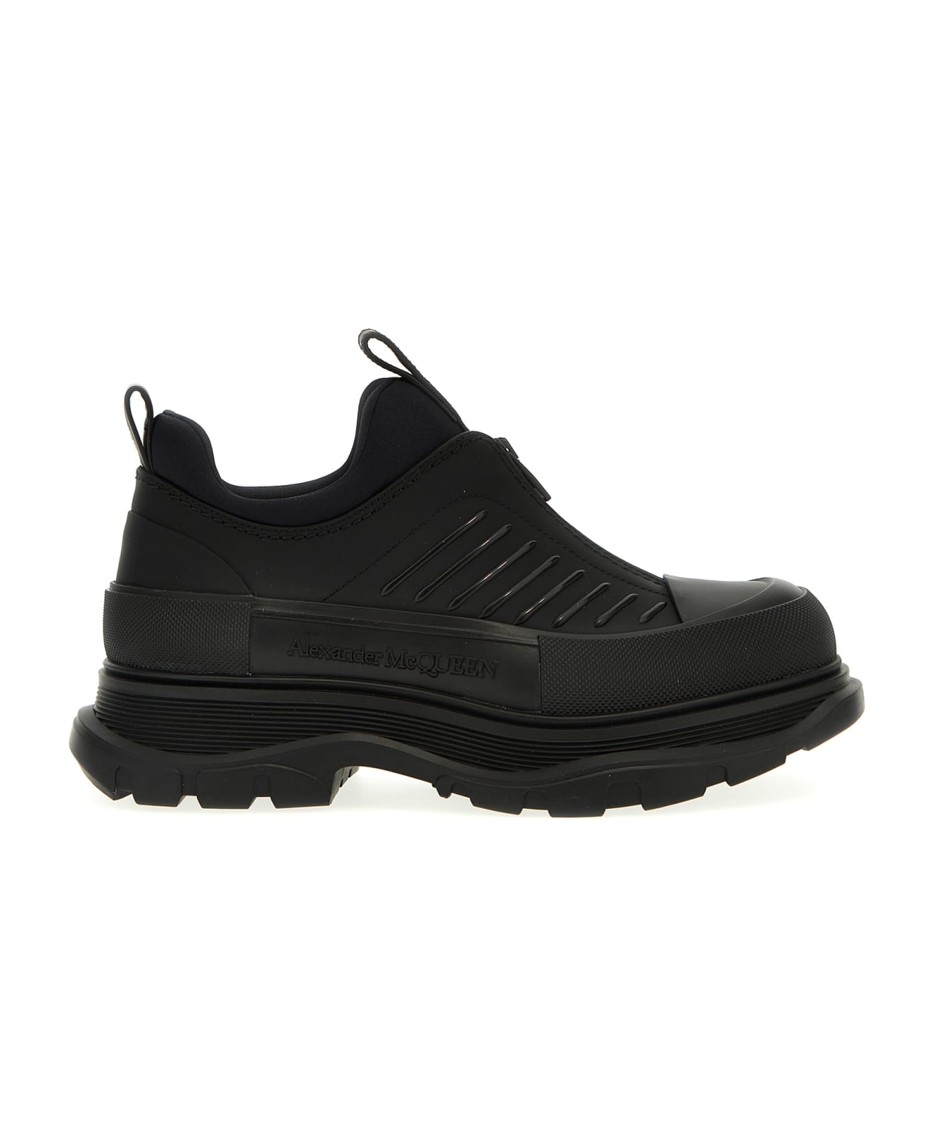 'Lace Up' sneakers in technical fabric and rubber, front zip closure, oversized rubber sole. Composition: