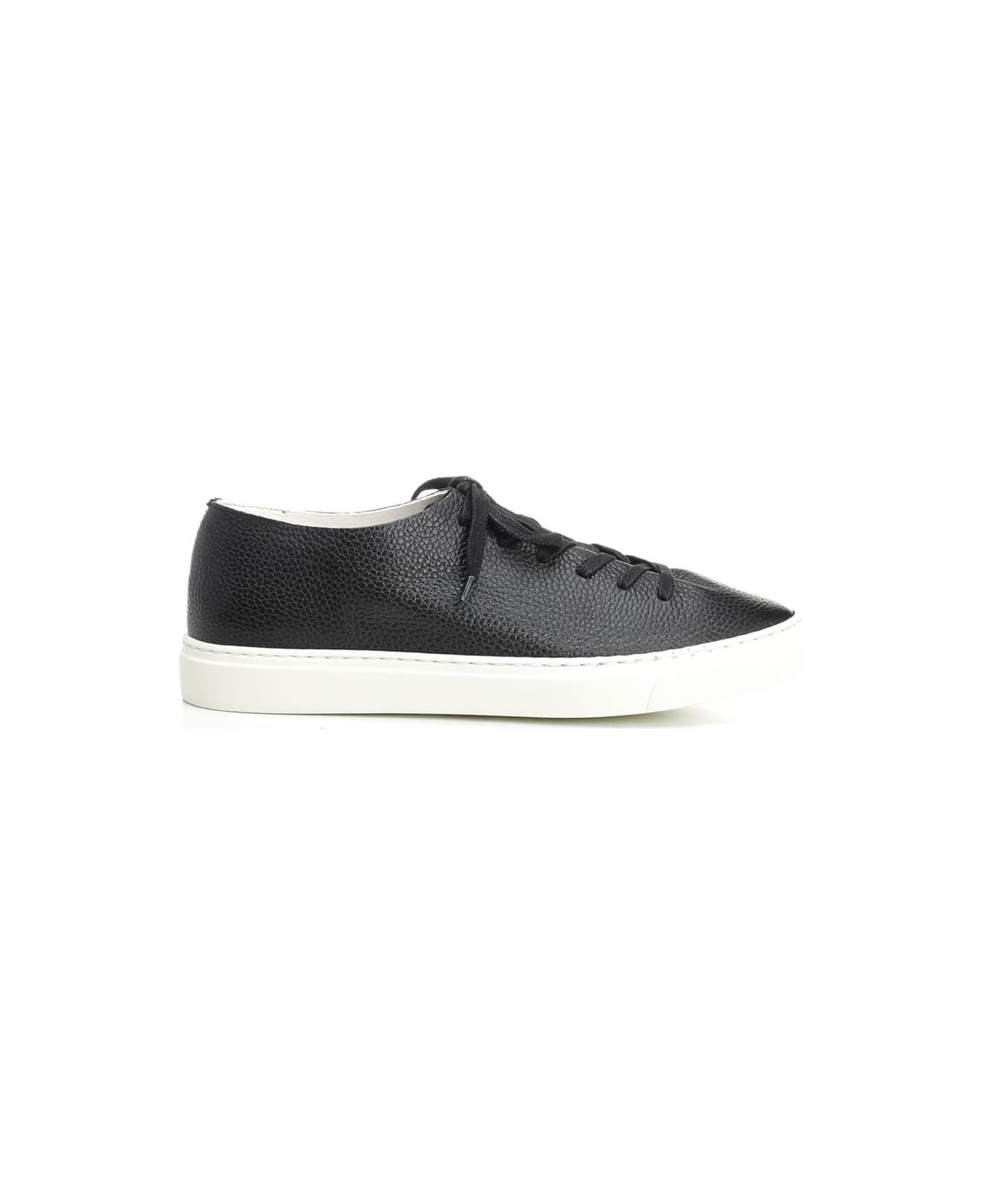 "Leggera" sneaker in black leather handmade from a single piece of leather, without stitching or lining, rubber sole