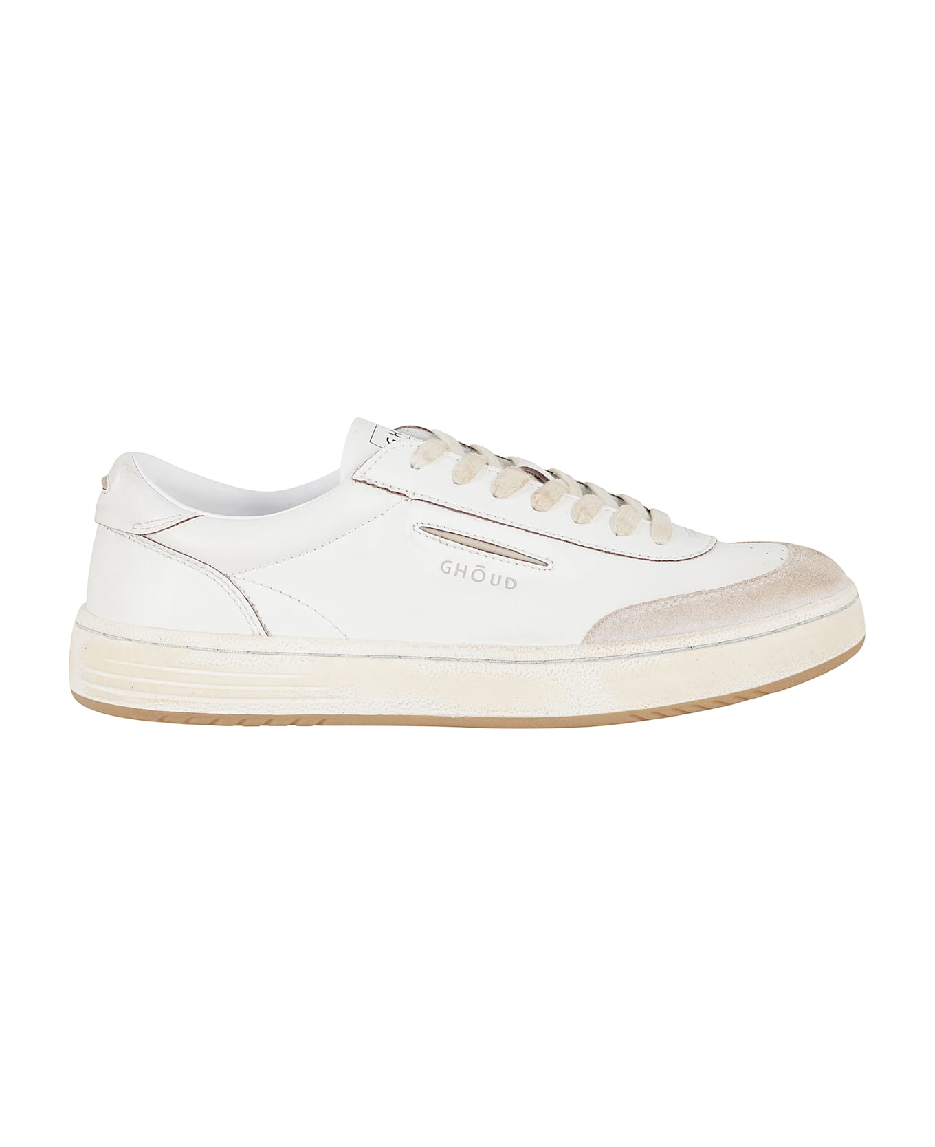 Lido Low sneakers - Ghoud - White color - Leather upper - Round toe with suede insert - Tongue with printed logo - Contrasting side logo - Lace-up closure - Rubber sole