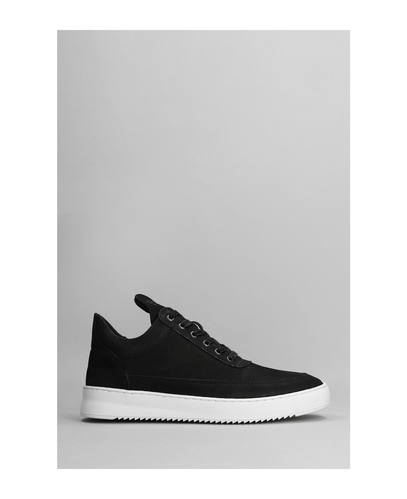 Low Top Ripple Sneakers in black nubuck, laces, logo on tab, rubber outsole, 100% nabuk, Made in Portugal