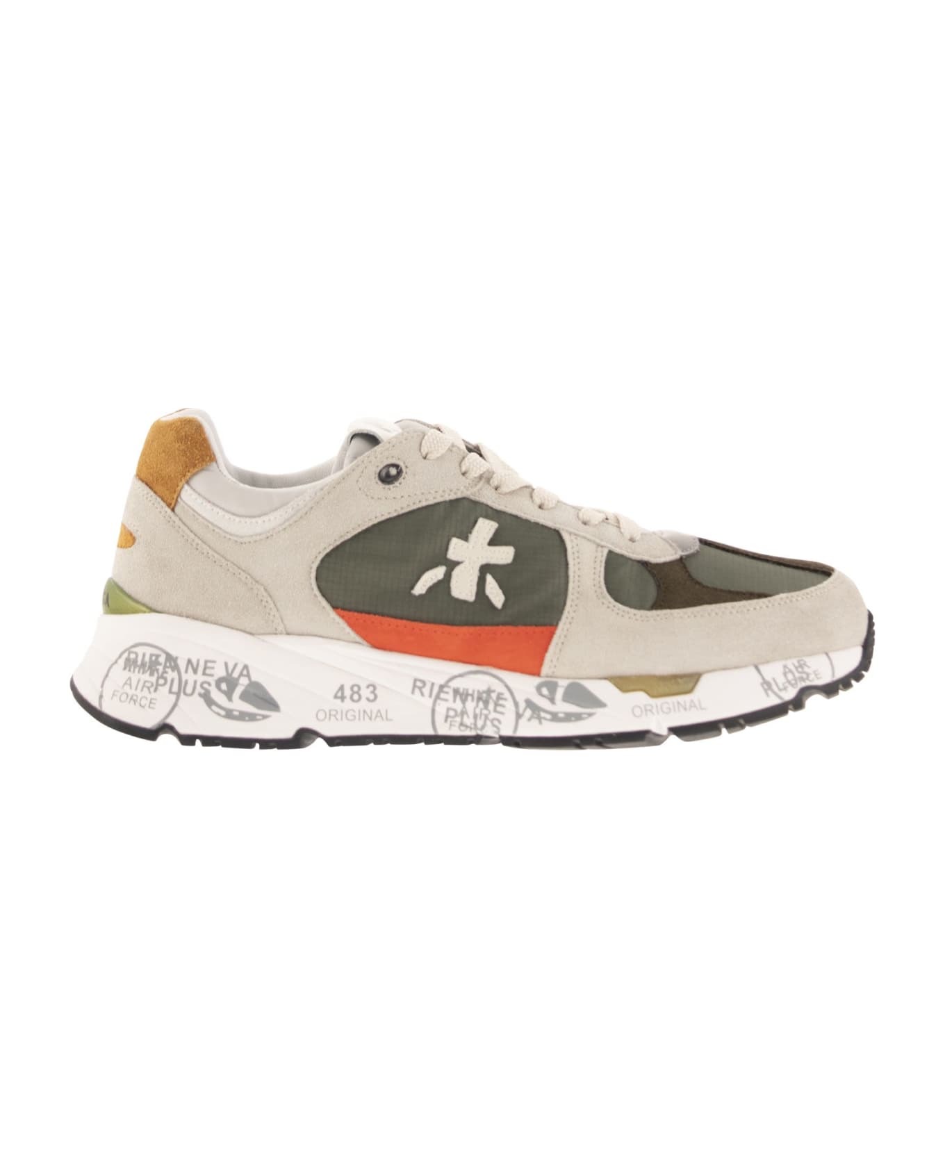 The Premiata Mase in this version is characterised by a mix of materials, technical fabric, suede and leather details on the buttonholes and toe. Suede details are present on the sides and on the heel. The ever-present symbol on both sides. - Genuine leather - Fabric laces - Rubber sole DESIGNER ID: MASE 6157