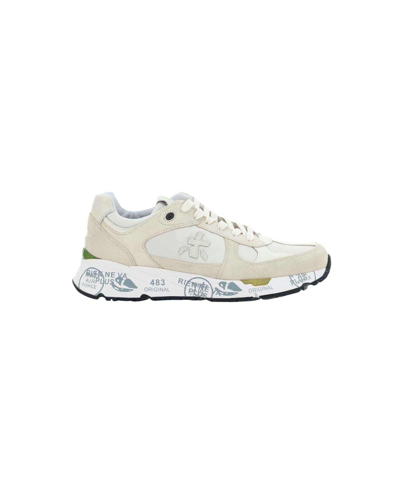 Mase sneakers by premiata, lace-up front closure, multicolored paneled design, contrasting iconic brand logo on side panels, pressure and contrasting prints on sole, suede leather details, contrasting logo insole.