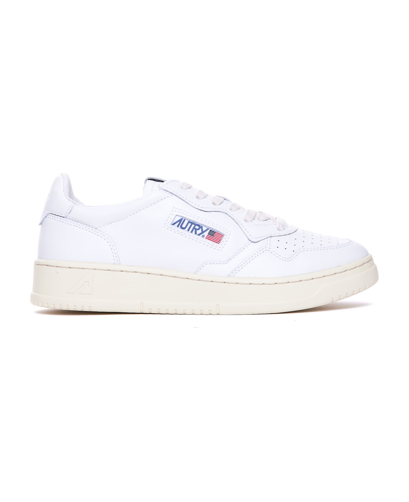 Autry white low medialist sneakers, round toe, drawstring, lateral logo