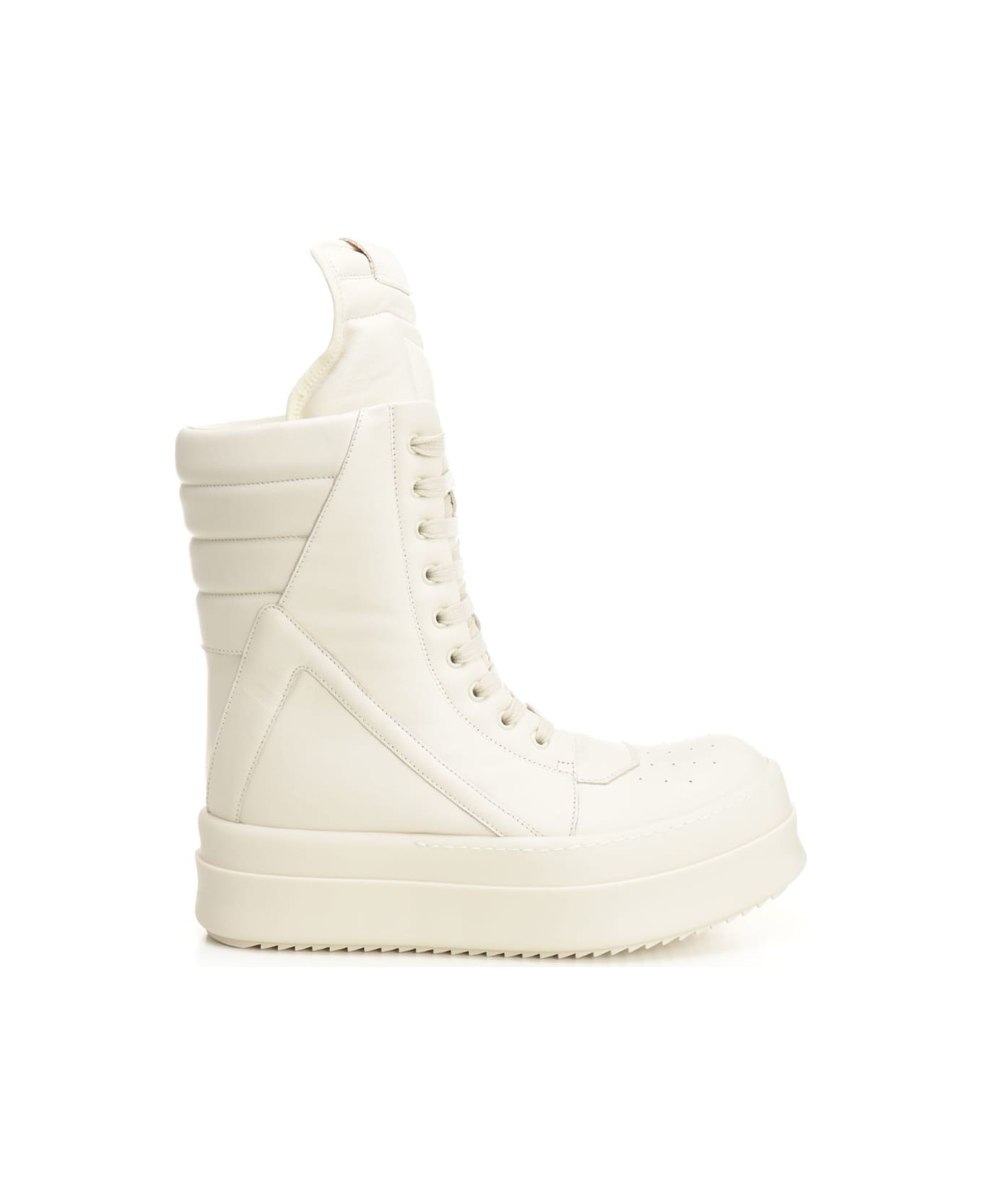 Rick Owens Mega Geobasket sneakers in soft and padded leather with iconic geometric panels and platform sole