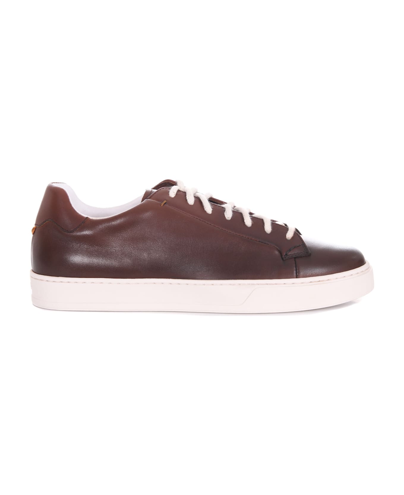 Men's Doucal's sneakers in Brown leather with a tamped effect and darker areas. Lace-ups. Contrasting inserts. 30 mm rubber sole. Size in photo 41 100% leather