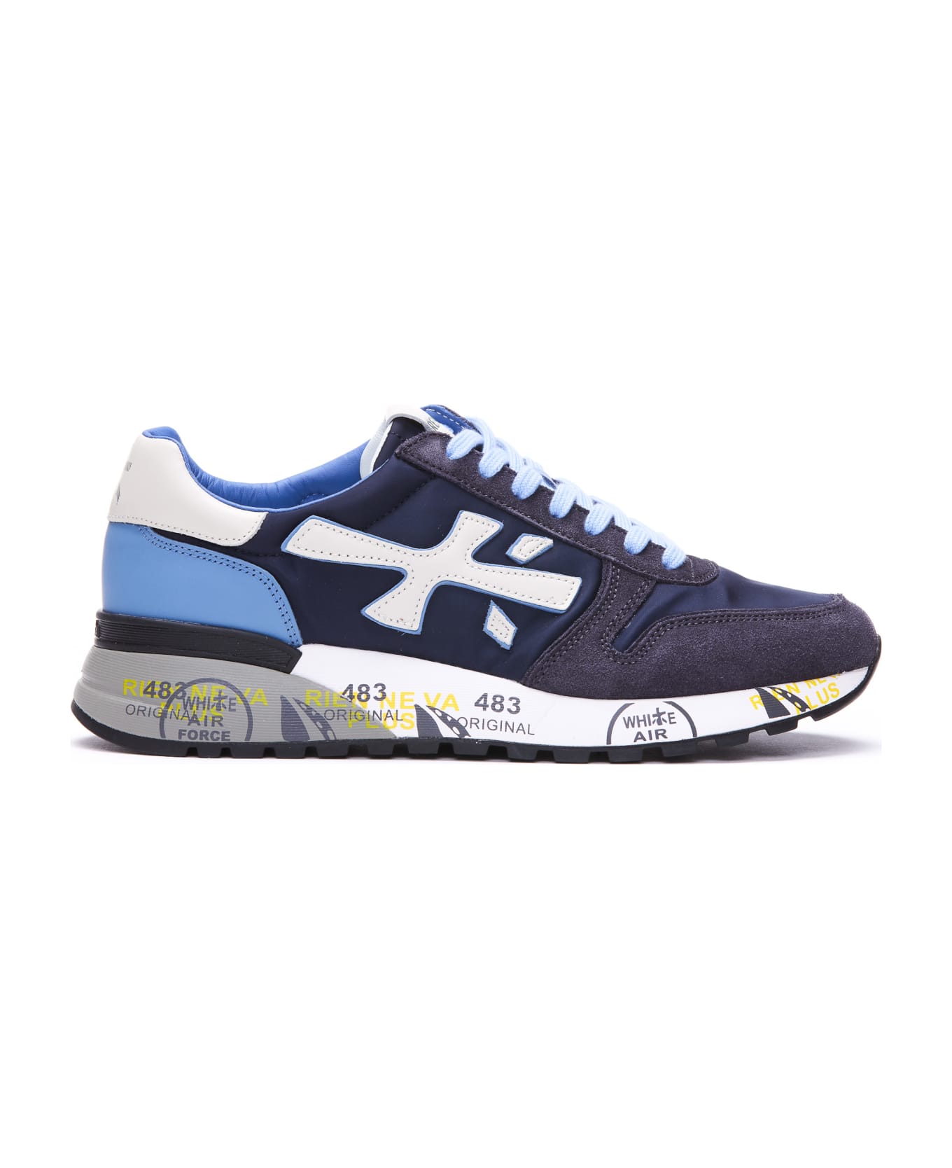 Premiata blue Mick sneakers, fabric and leather upper, laces closure, logo, round toe