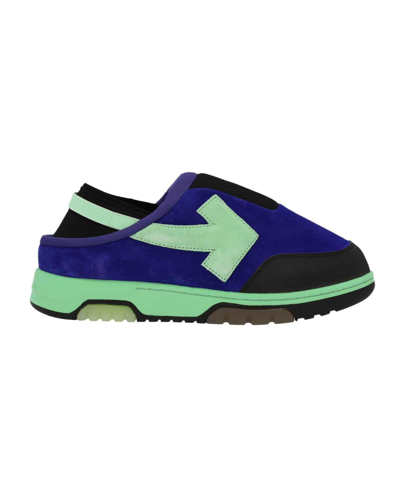 Suede 'Mule Out Of Office' sneakers with technical fabric and rubber details, a slip-on style, a rubber sole, a contrasting side logo, stretch neoprene heel tabs.