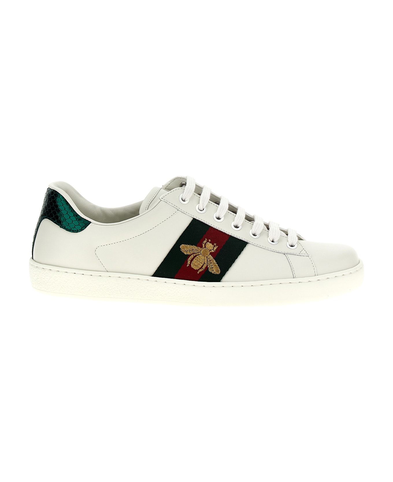 'New ace' leather sneakers with side web detailing embellished with gold bee embroidery and different l green and red heel tabs. Composition: 100% calf leather (bos taurus)
