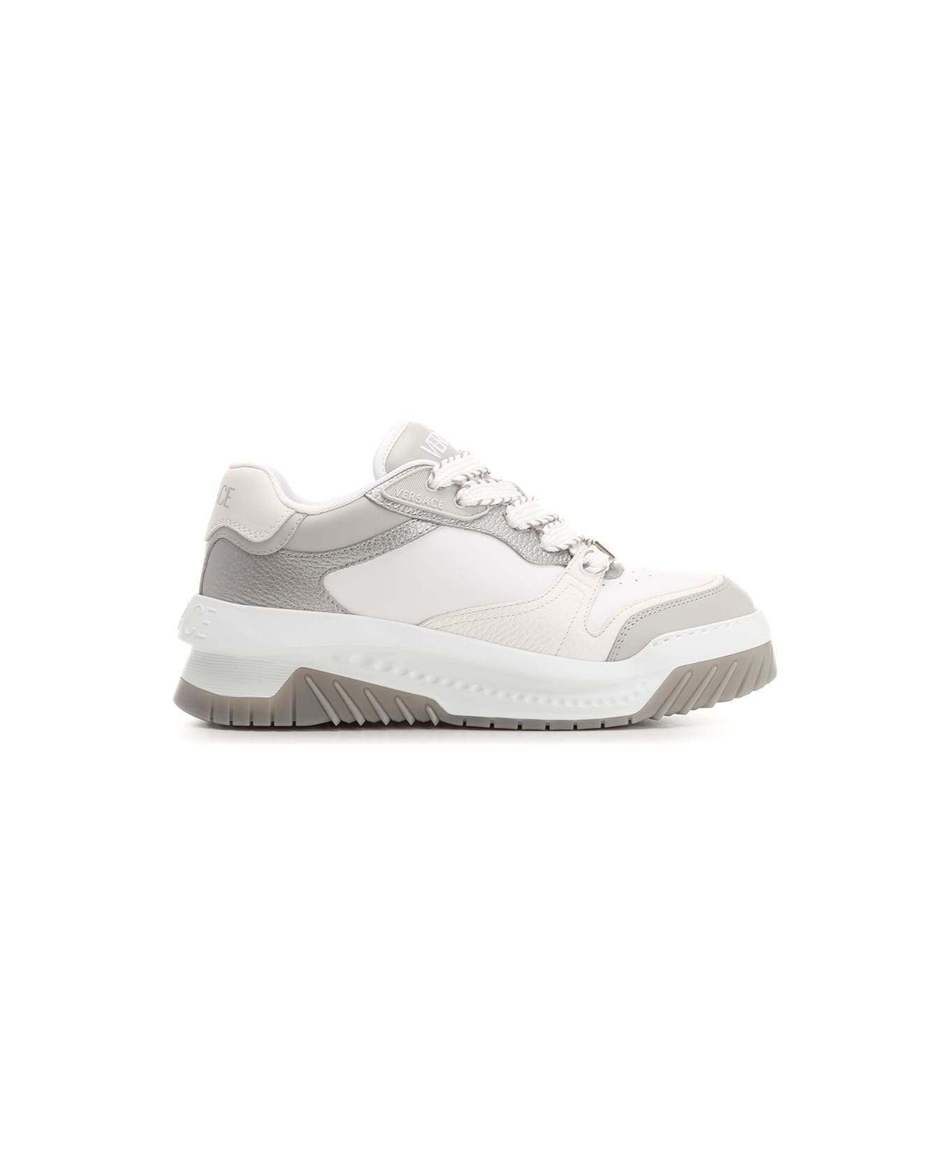 'Odissea' sneakers in calfskin from Versace, rubber sole with Greca detail on the front and Versace logo embroidered on the tongue. Composition: