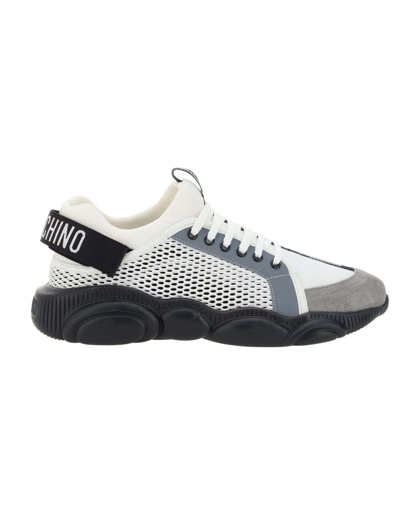 Orso35 sneakers by moschino, round toe, lace-up front fastening, characteristic teddy bear rubber sole, webing label with iconic brand monogram embroidered on the back of the foot, nylon puller on the heel with contrasting logo.
