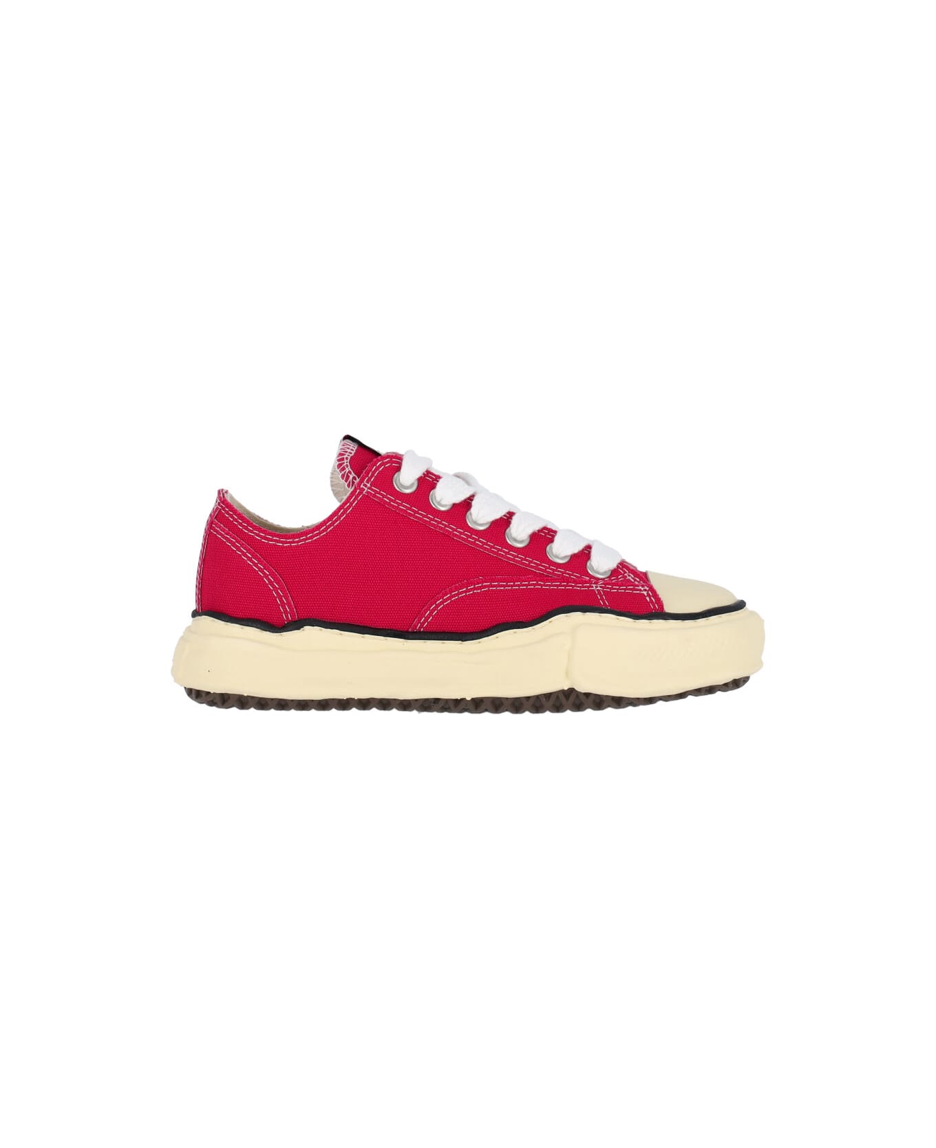 Maison Mihara Yasuhiro Peterson OG sneakers in red cotton with round toe, laces, logo label on the tongue, textured rubber sole, logo detail engraved on the back.