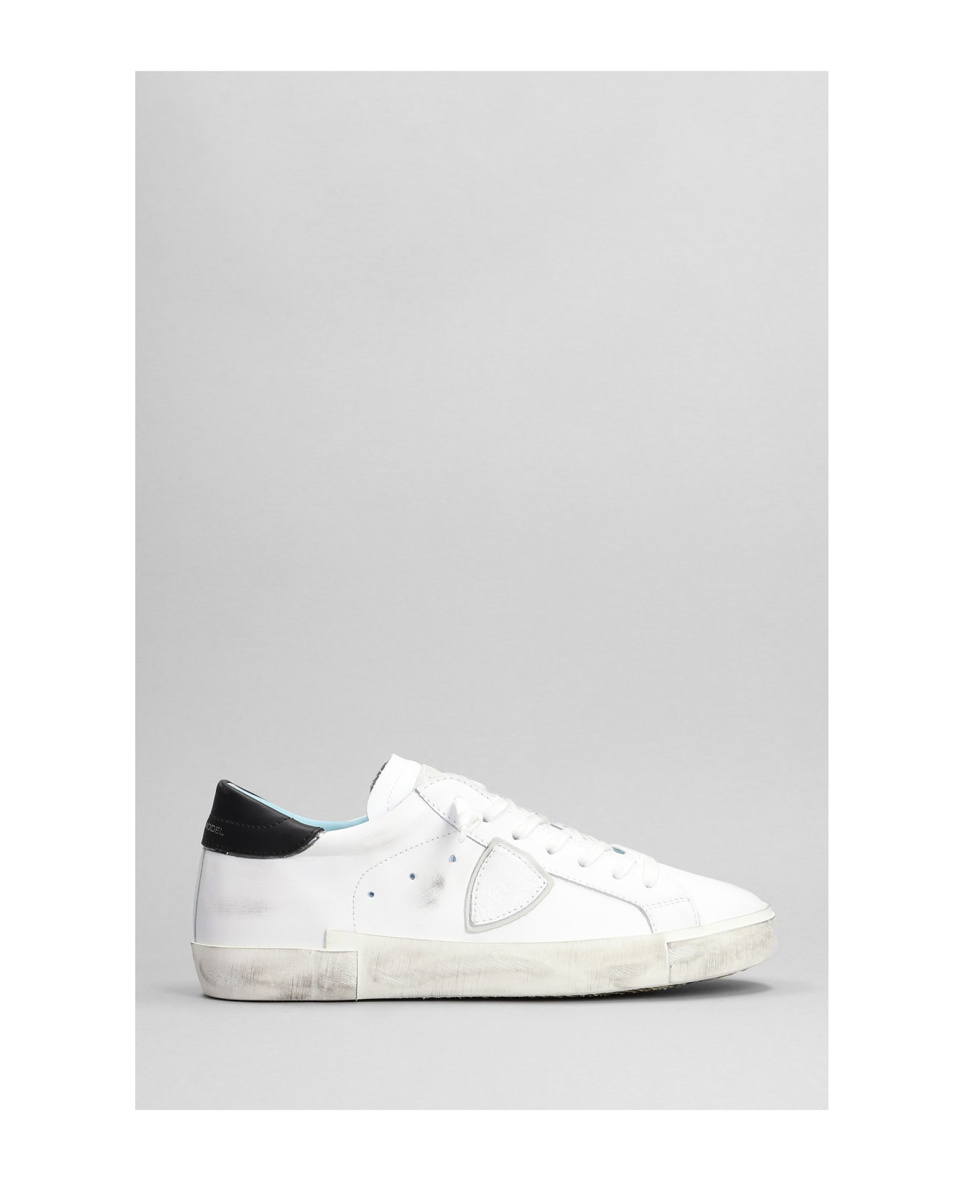 Prsx Sneakers in white leather, laces, logo on heel, iconic lateral logo, rubber outsole, 100% leather, Made in Italy