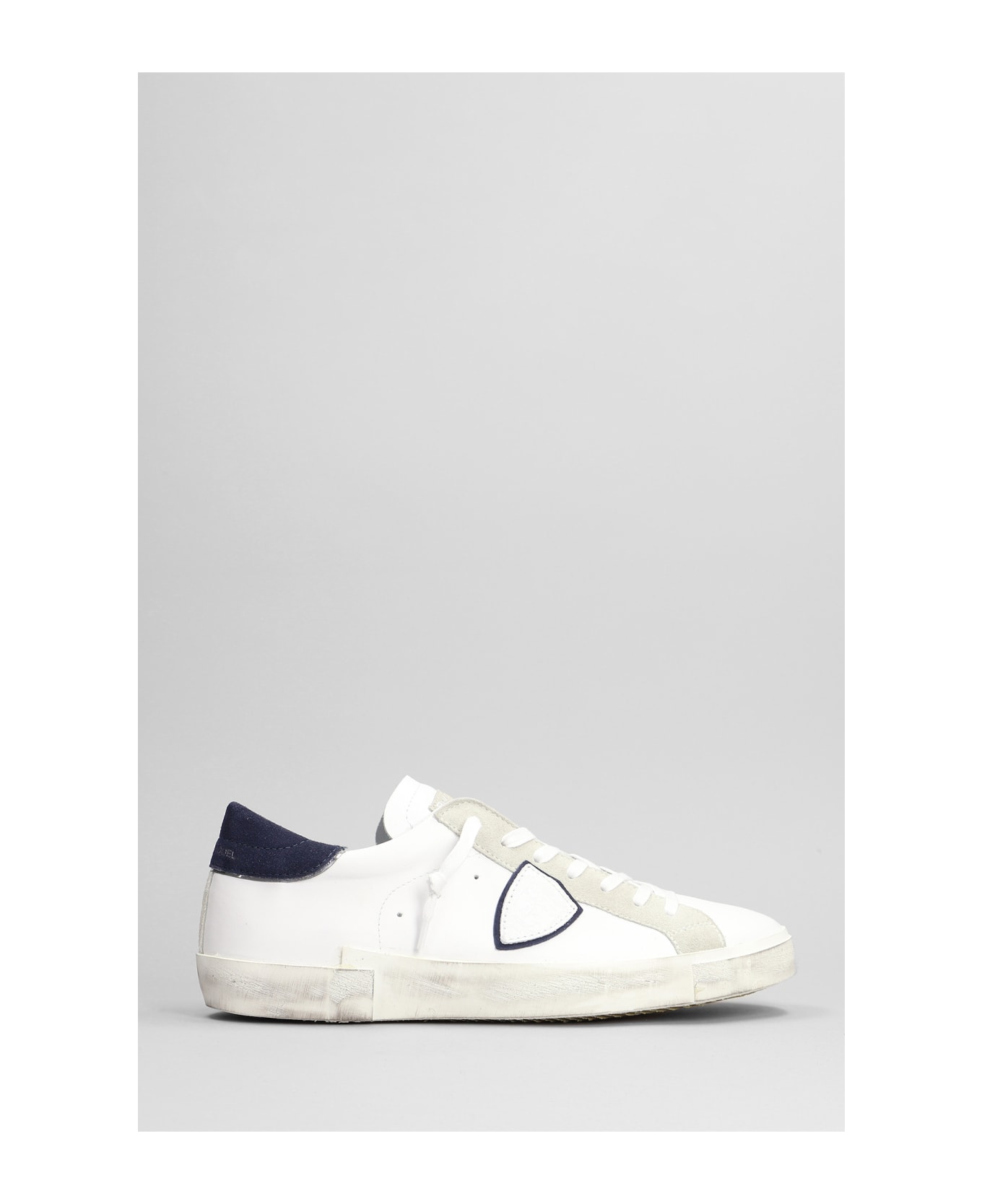 Prxs Sneakers in white suede and leather, laces, logo on heel, iconic lateral logo, rubber outsole, suede details, Made in Italy