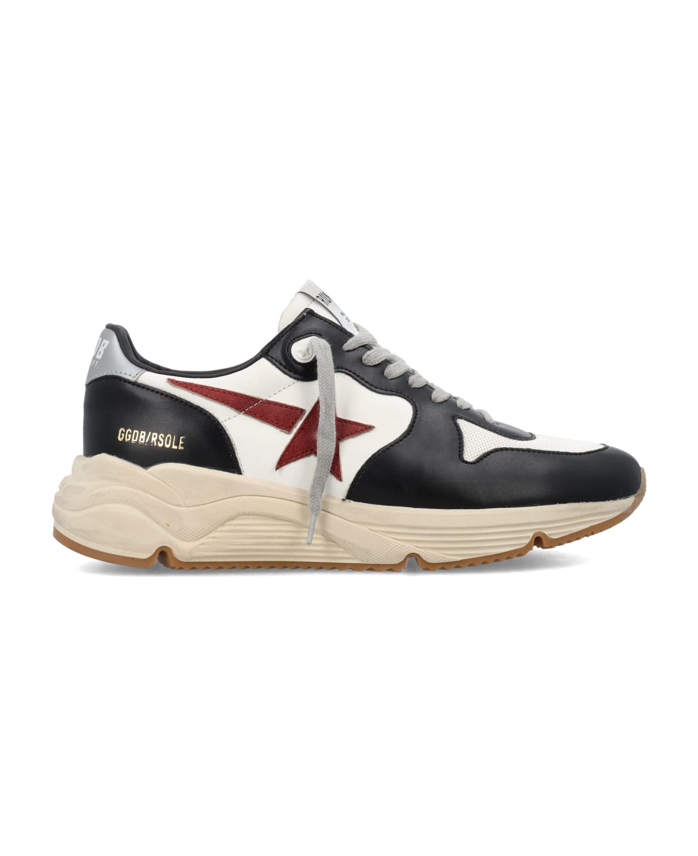 Running Sole Sneaker Man By Golden Goose. Featuring: Low-top Leather Star Logo At Side Silver Heel Tab With Printed Logo Logo Label At Tongue Mesh Upper With Leather Inserts Lace Closure Round Toe Vintage Finish