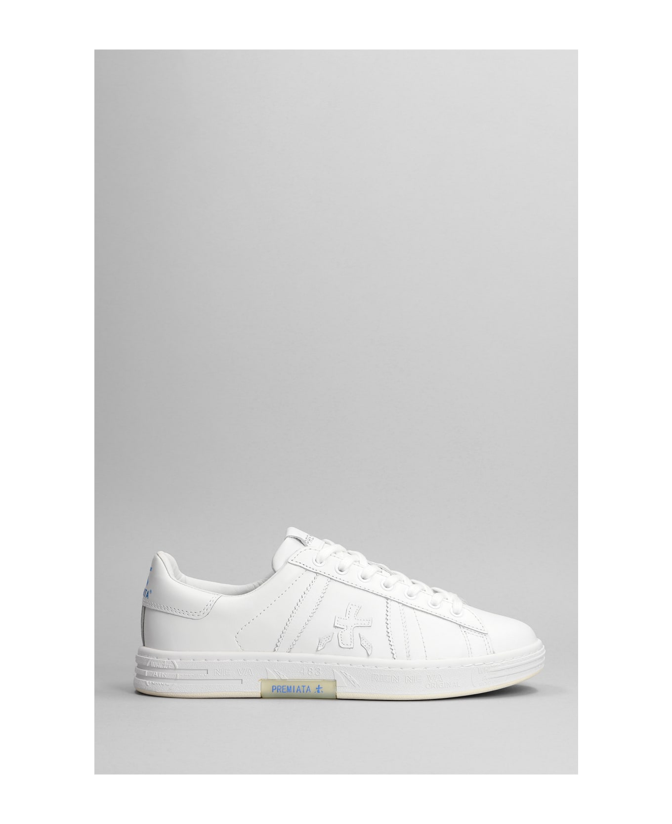 Russell Sneakers in white leather, laces, logo on heel, iconic lateral logo, rubber outsole, 100% leather, Made in Vietnam