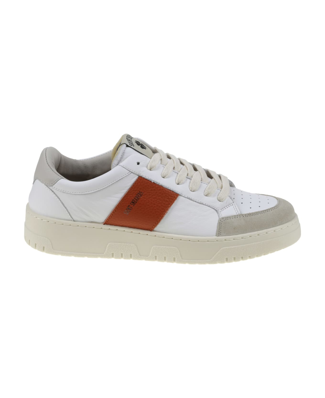 Saint Sneakers Sneaker in pelle bianca, punta traforata, suola in gomma, inserto arancione, inserto in camoscio, dettaglio logo.