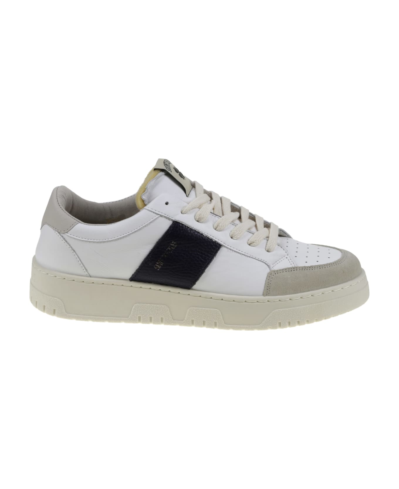 Saint Sneakers White leather sneaker, perforated toe, rubber sole, blue insert, suede insert, logo detail.