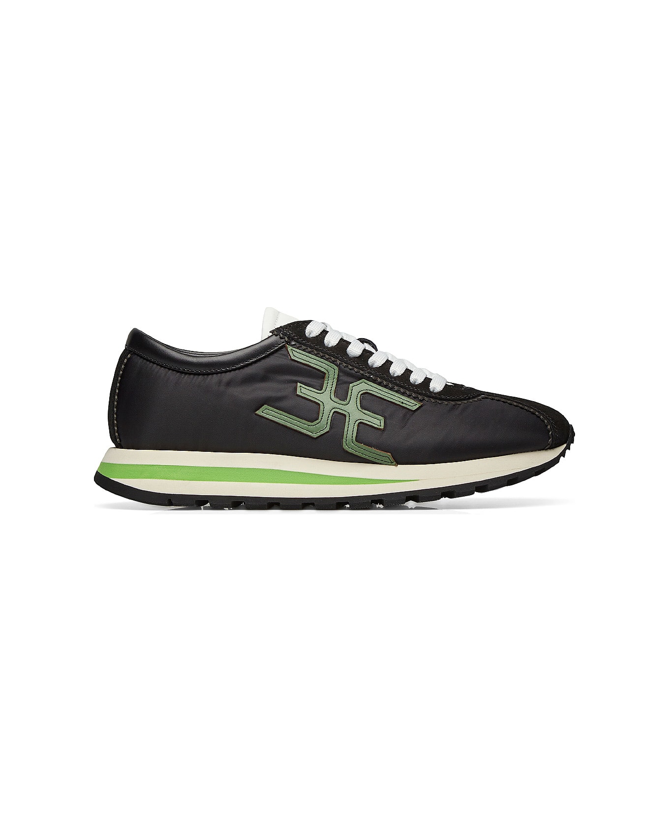 the latest marcell line in technical fabric and velour is oversized for the gentleman who dares for a sportier look. new extra-large stylised fabi logo on the side. lightweight micro sole and rubber outsole. colour: black material: technical fabric