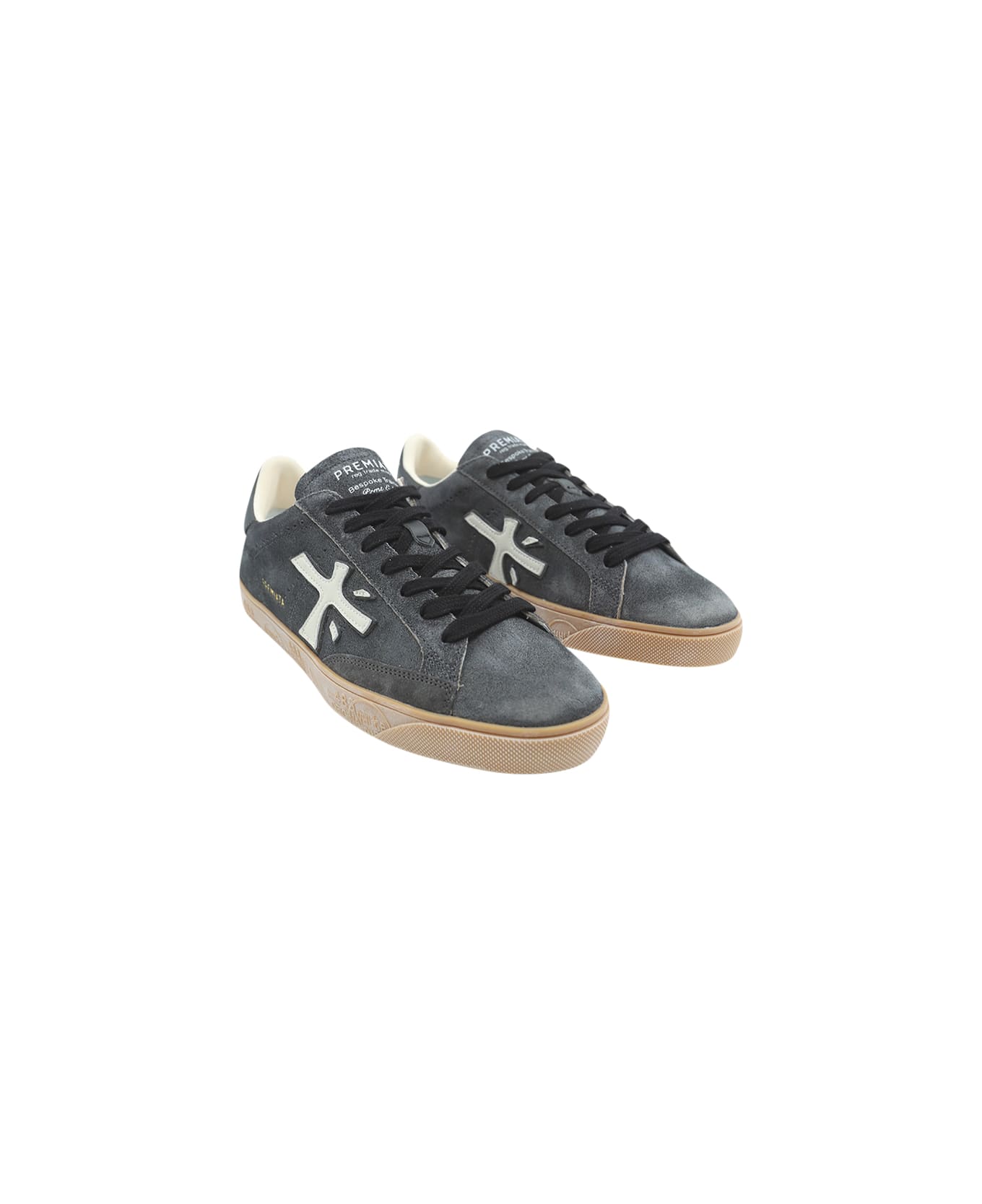 Ergonomic and super light sole, Premiata logo, lace closure. Color:. Sole height: 2. 2 cm. Composition: Sole: 100% Rubber; Exterior: 85% Calf Leather, 15% Polyurethane; Lining: 86% Goatskin, 14% Polyurethane.