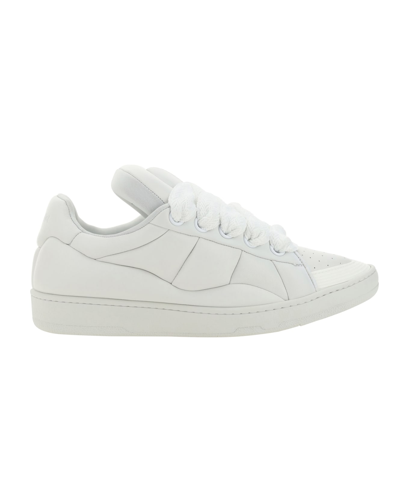 Sneakers by lanvin, rubber-reinforced round toe, padded tongue with iconic logo plaque, metal eyelets, paneled design, double lace-up front closure, oversize fit.