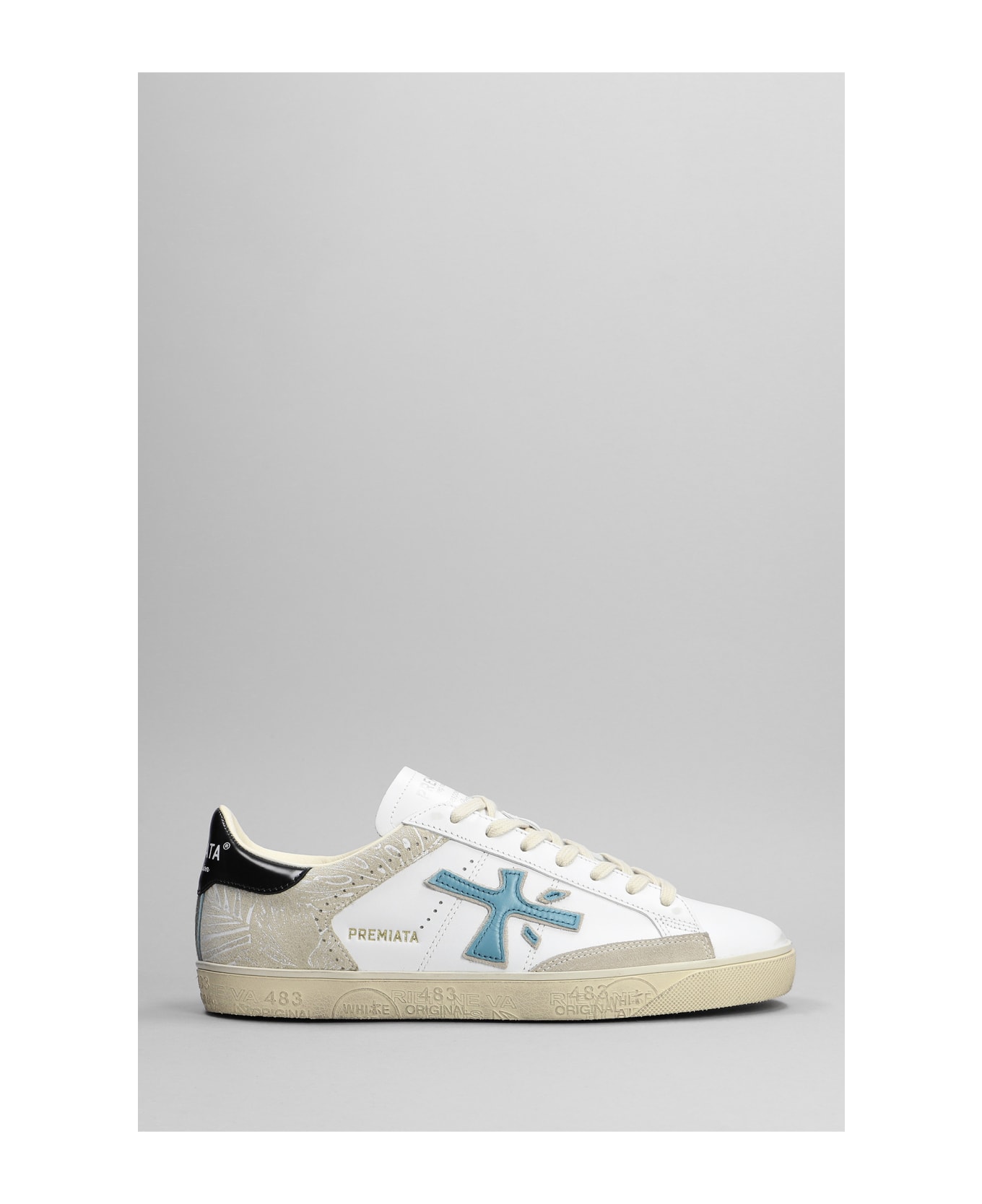 Steven Sneakers in white leather, laces, logo on heel, iconic lateral logo, suede details, 100% suede, rubber outsole, Made in Vietnam