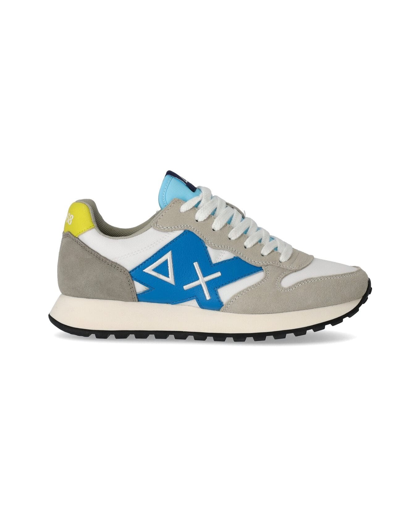 Jaki Summer Time sneaker by Sun68 made of white nylon and beige suede with contrasting inserts. Embroidered logo on the side, lining and insole in fabric. Rubber sole, height 3. 5 cm.