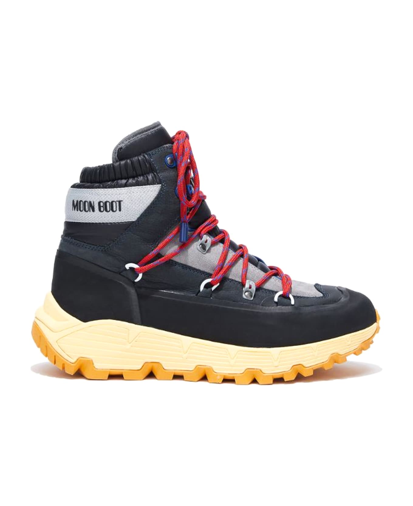 Tech Hiker Black Boots, 100% water-repellent, elasticated ankle collar, logo-print grosgrain stripe at back, nubuck and suede panelling, white metal eyelets, vibram tread sole, bi-colour lace-up front fastening