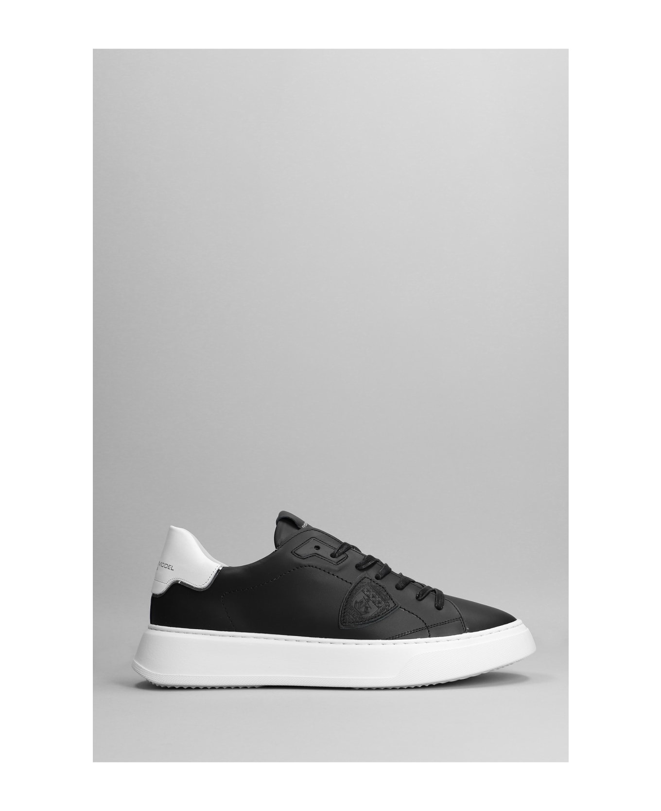 Temple Sneakers in black leather, laces, logo on heel, iconic lateral logo, 100% leather, rubber outsole
