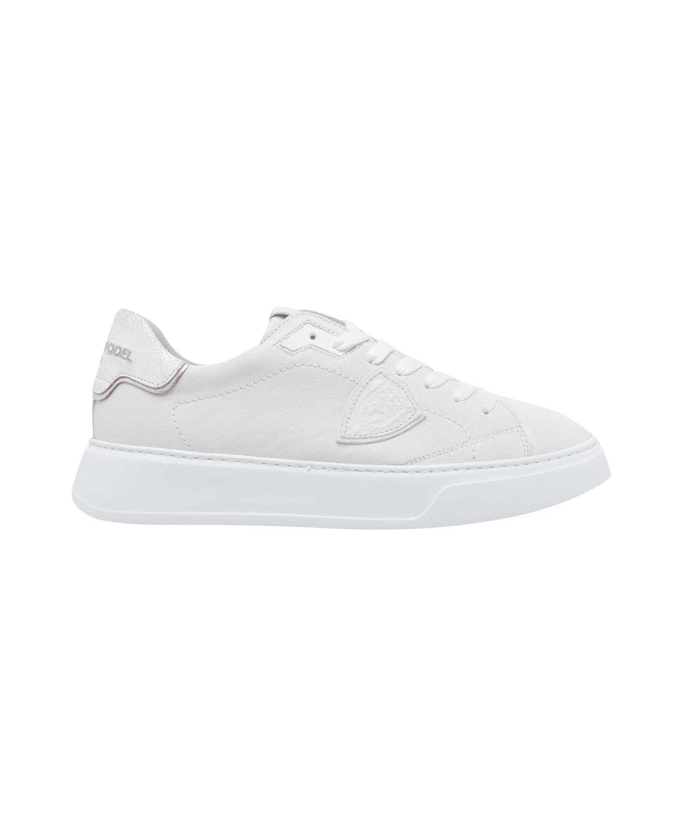 Philippe Model white Temple sneakers, round toe, lateral tone on tone logo, leather upper
