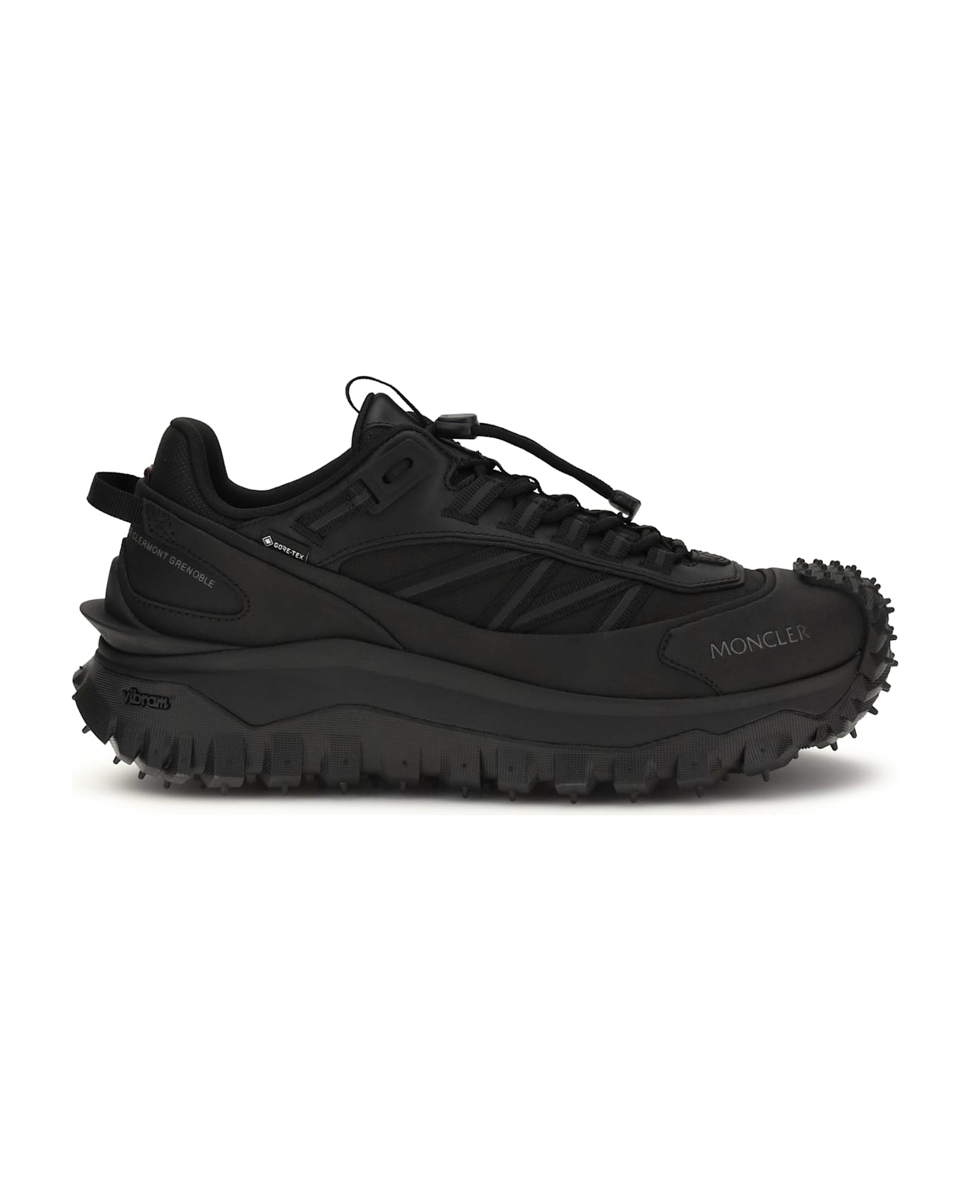 The trailgrip gtx sneakers by monlcer are designed to offer high performance and comfort in all conditions. the upper combines nylon, tectuff, and leather, while the mesh lining with a waterproof gore-tex® membrane ensures protection and breathability. the lace-up model is completed by a tpu spoiler and an eva midsole with a carbon fiber insert between the midsole and outsole for greater stability and responsiveness. the vibram® megagrip rubber outsole guarantees grip and durability, making these sneakers ideal for technical outdoor and urban use.