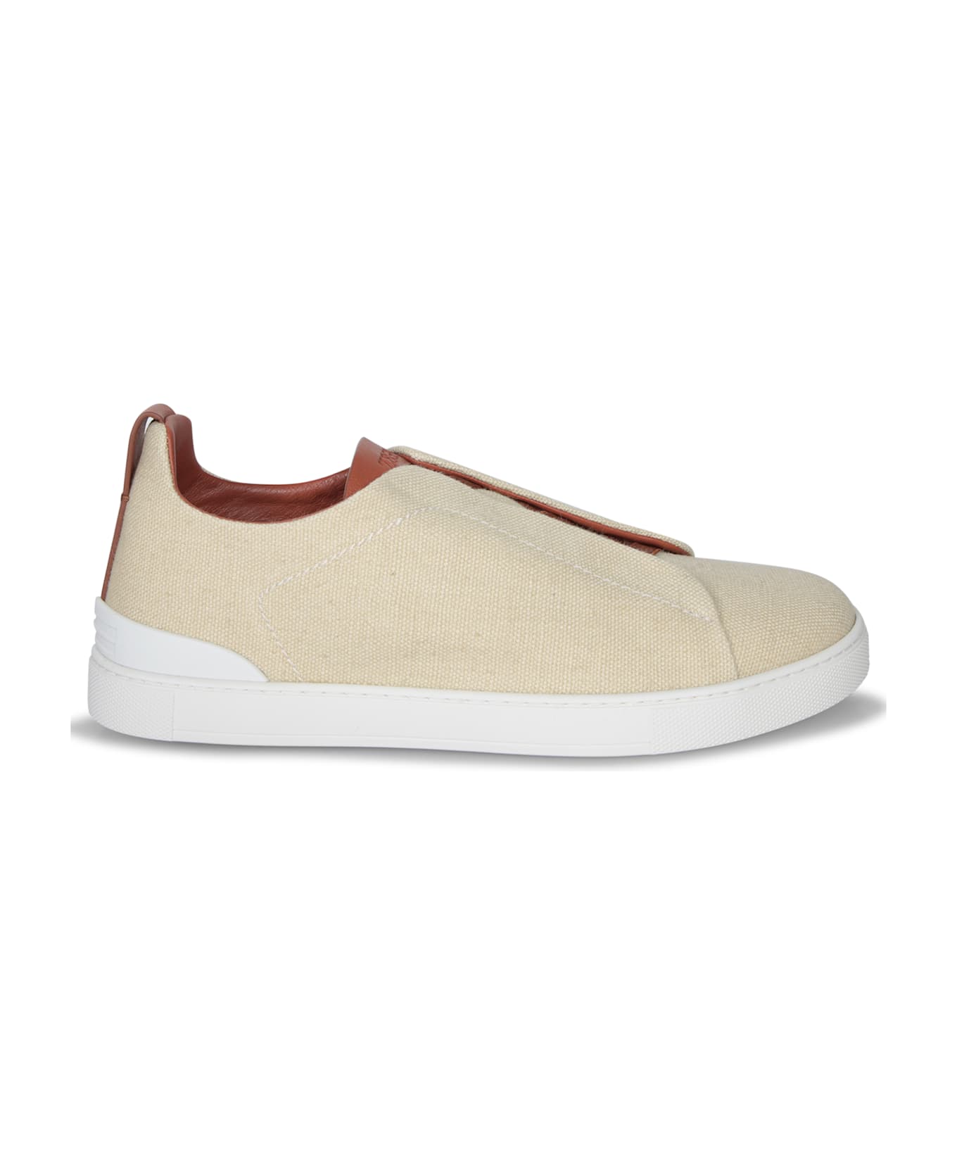 Discover casual elegance with these Zegna beige linen sneakers: featuring luxurious brown leather trim and a comfortable rubber sole for a sophisticated, versatile touch. Composition: 40% Linen, 40% Cotton, 20% Leather
