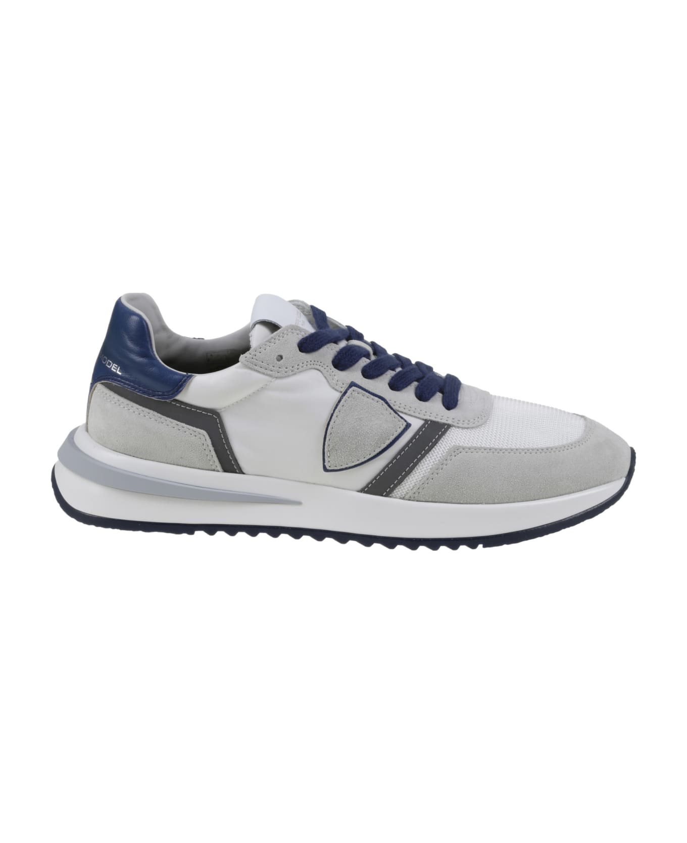 Philippe Model Sneaker in suede leather and white nylon, royal blue insert on the back, side logo, rubber sole. Composition: 100% Calf Leather