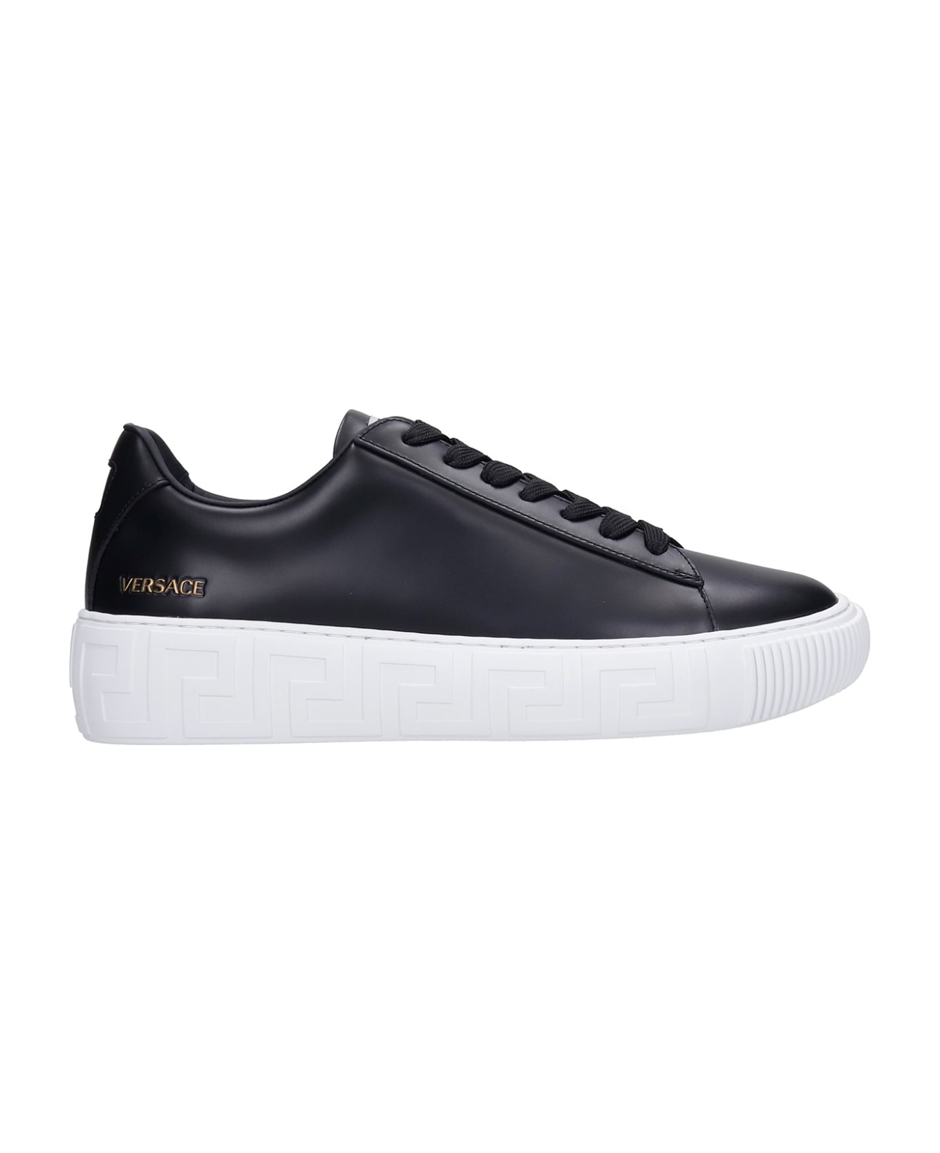 Greca Sneakers in black leather, laces, engraved logo, greca pattern on the midsole, rubber outsole, 100% leather, Made in Italy Composition: Leather