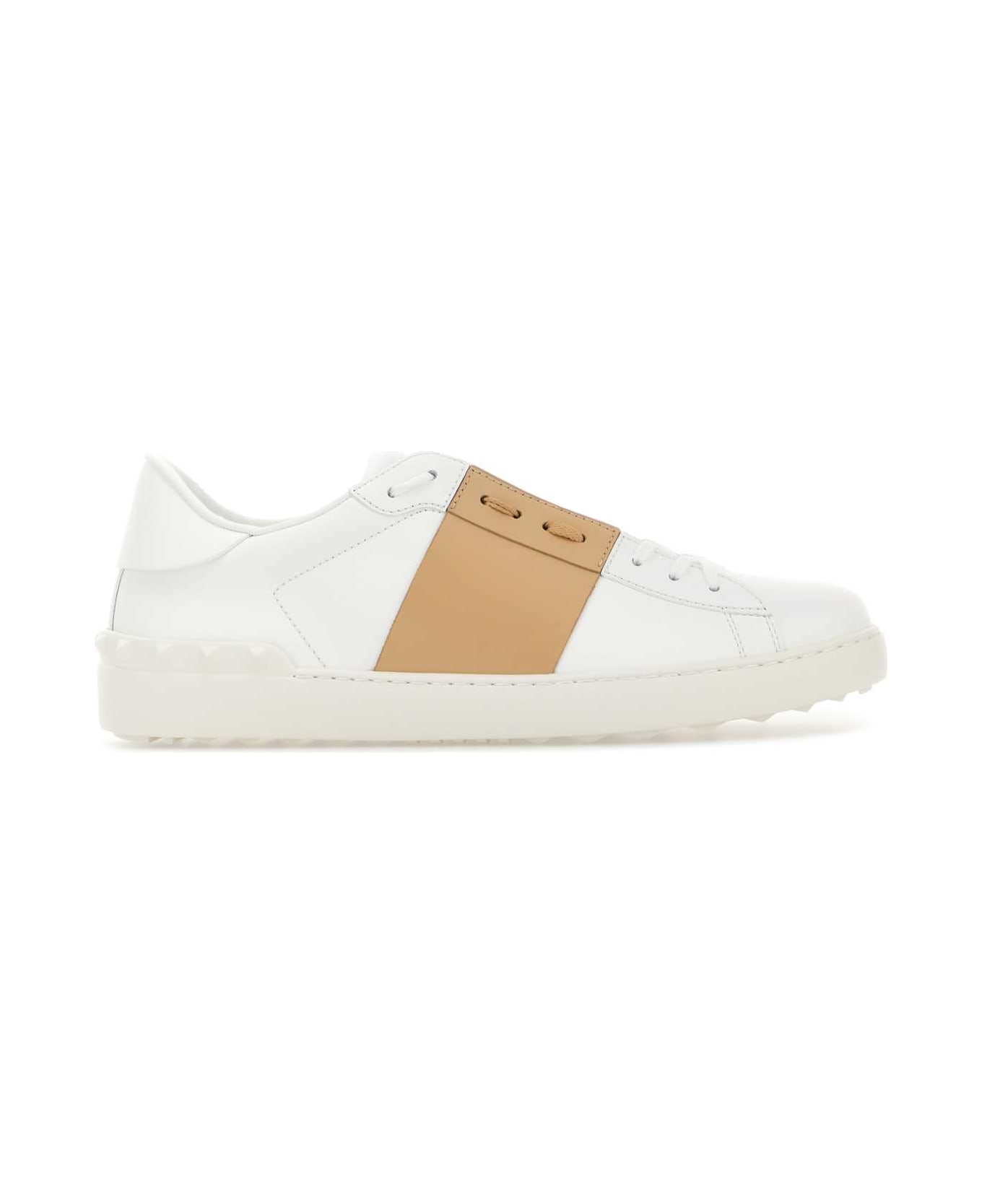 White Leather Open Sneakers With Camel Band from Valentino Garavani