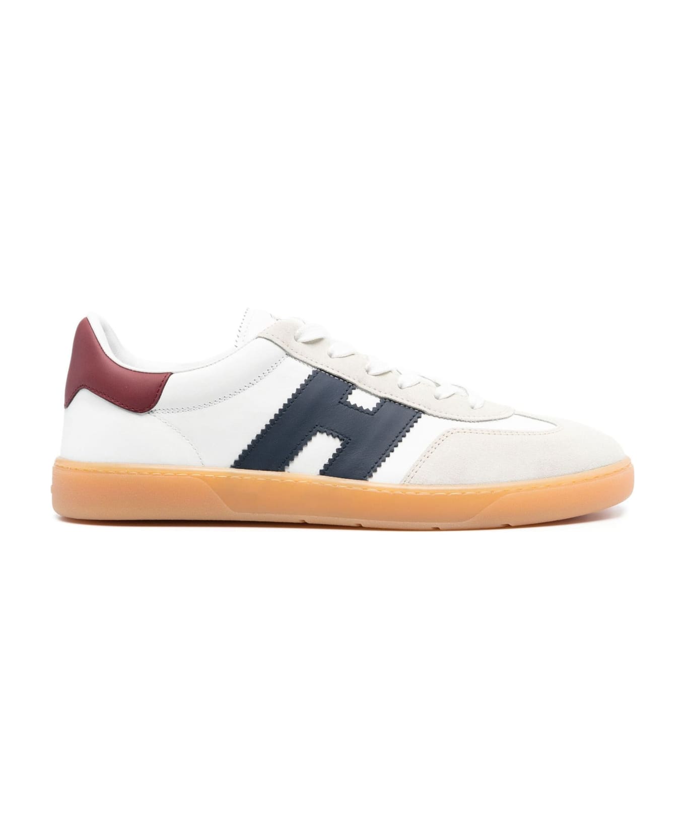 white leather sneakers logo patch to the side logo-print tongue round toe front lace-up fastening branded insole flat rubber sole