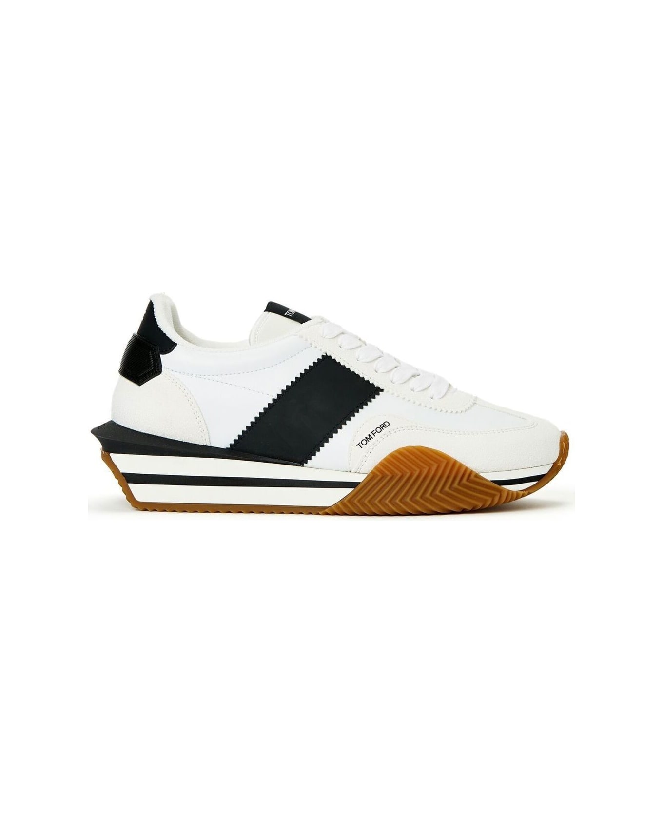 Sneakers Low top Almond toe Lace-up fastening Side logo print Contrasting details Rubber chunky platform White Faux leather