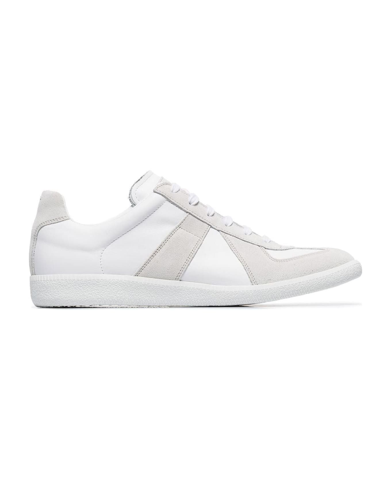 White Replica sneakers featuring a round toe, a lace-up front fastening, contrasting panels and signature white stitching to the rear. Composition: Calf Suede, 100% , Lamb Skin, 100%