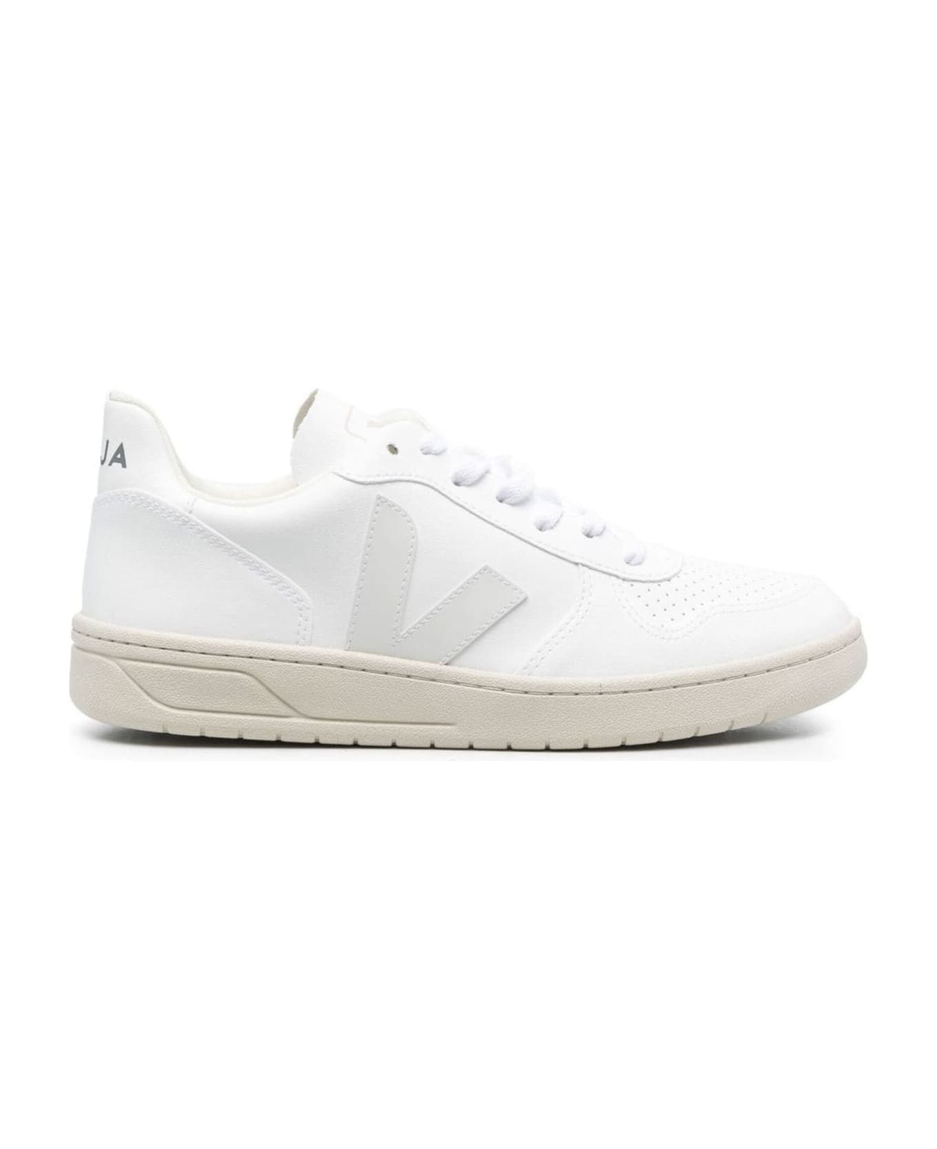 White URCA low-top sneakers, faux leather, perforated toebox, logo patch to the side, branded heel counter, logo-print tongue, branded insole, round toe, front lace-up fastening and flat rubber sole.