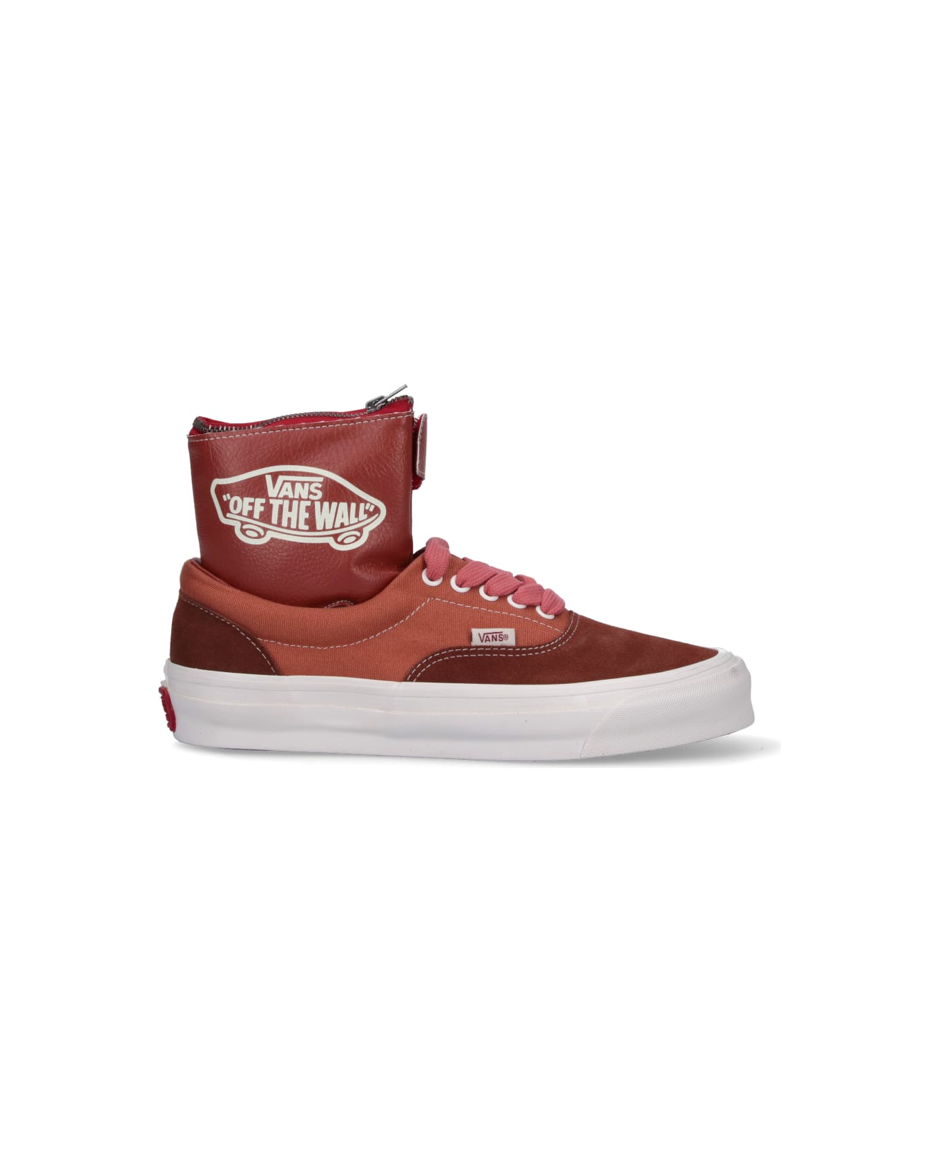 Taka Hayashi X Vans Og Era Vg Lx sneakers in suede and brown fabric with round toe, laces, white side logo label, removable logo pouch detail, white rubber sole with red logo detail on the back.