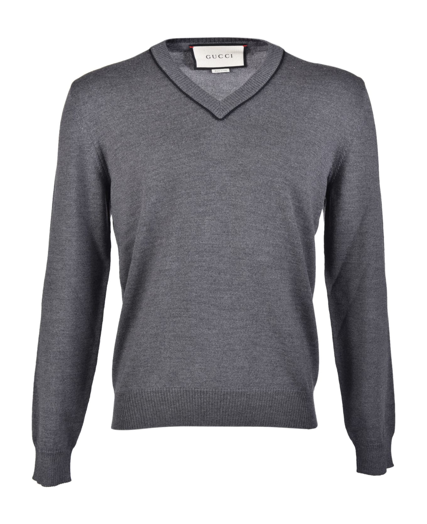 V-Neck Sweater from Gucci: Grey V-Neck Sweater with long sleeves, v-shaped neck and ribbed cuffs and hem.