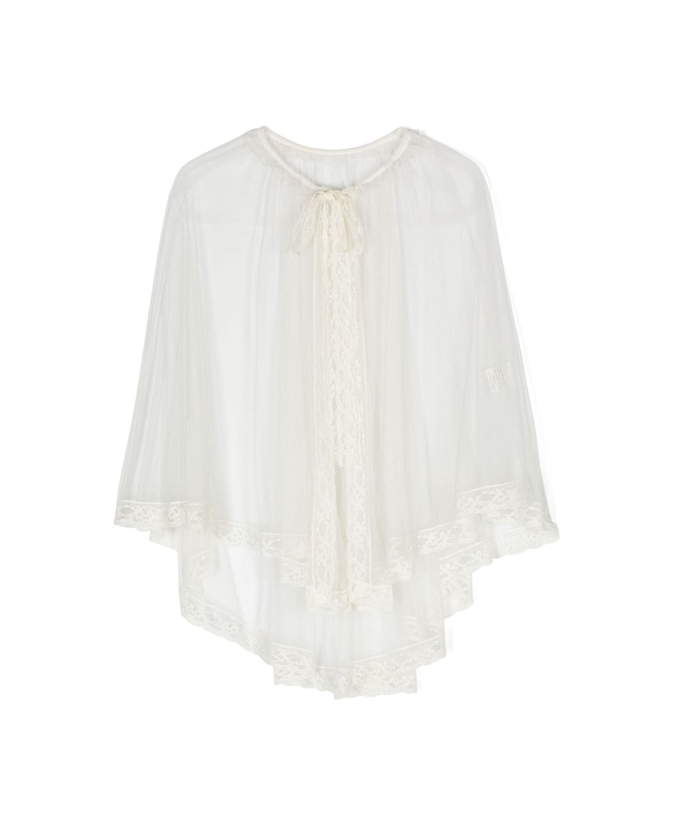 White cream mesh design lace edge ruched detail knot closure on the back flared hem unlined design Composition 100% fabric tessuto 100%