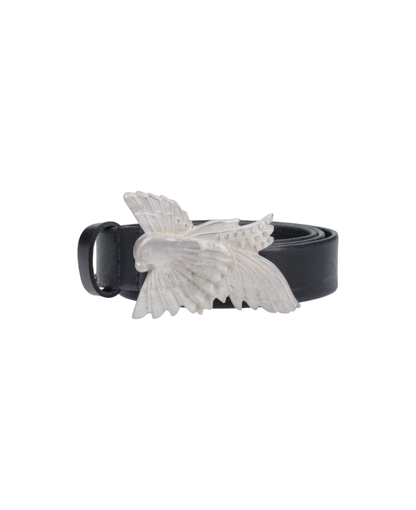 Black calf leather Our Legacy Dove belt, silver metal Dove buckle, adjustable.